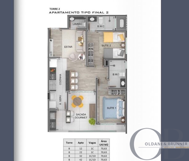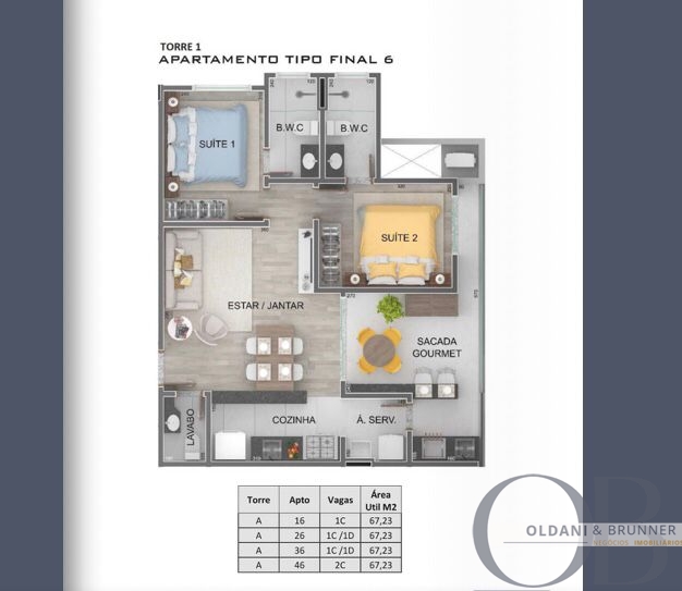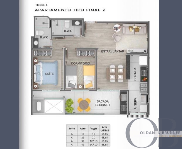 A partir de 2 dormitórios, sendo 1 suíte