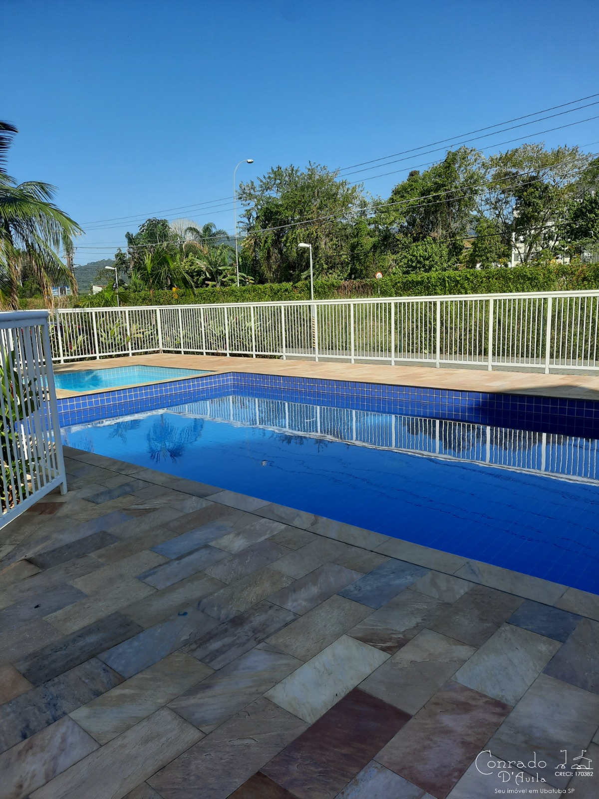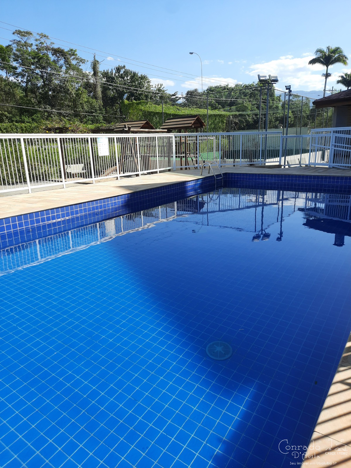 As crianças podem se divertir no playground, enquanto os adultos desfrutam da piscina ou do salão de festas.