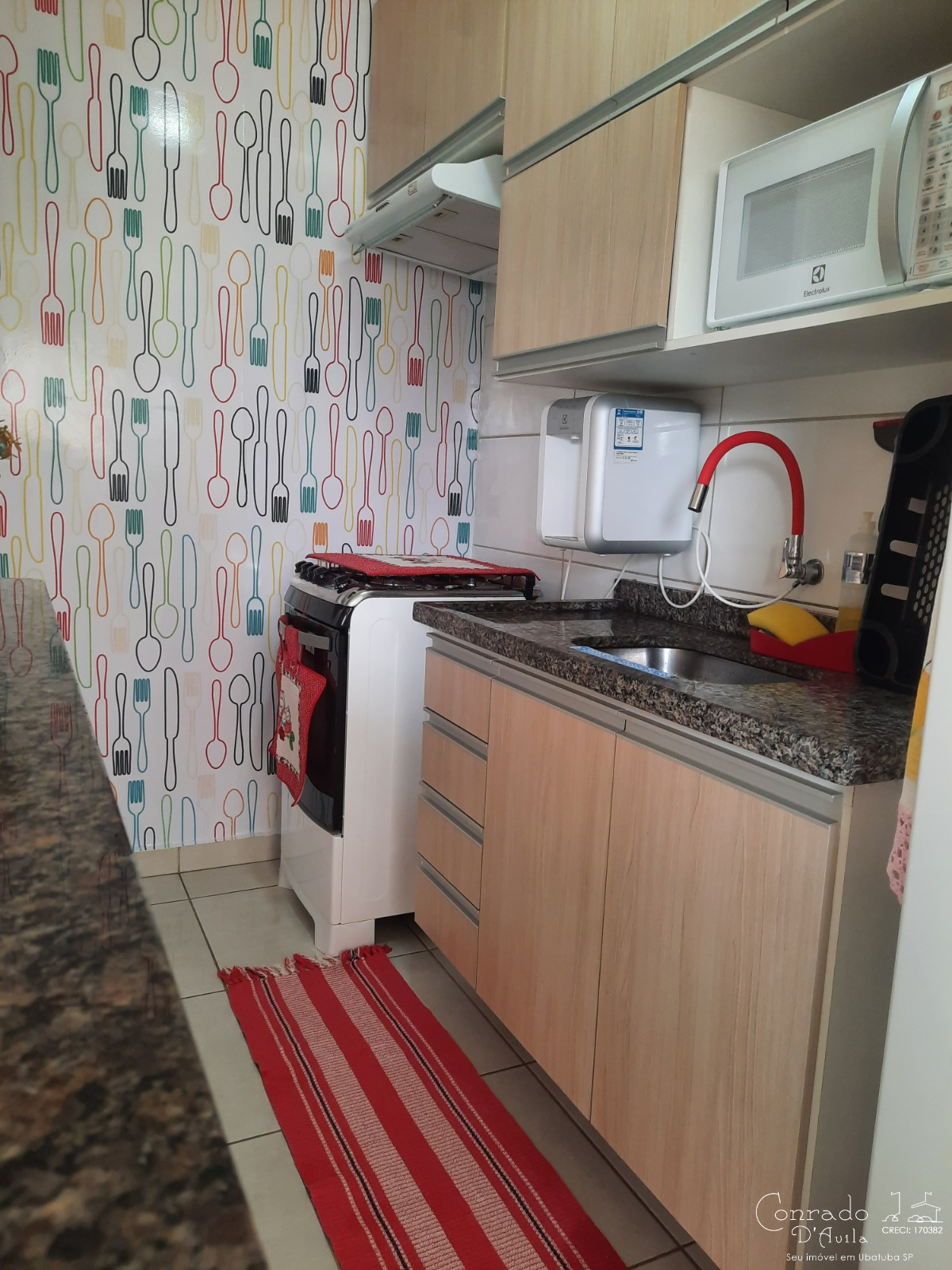 A cozinha é equipada com armário, facilitando o armazenamento de utensílios.