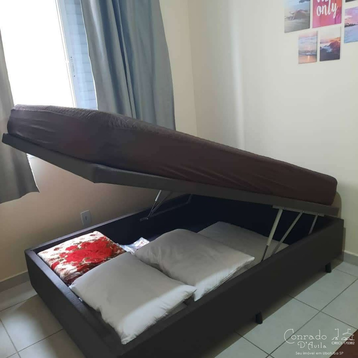 O apartamento é mobiliado e possui armários embutidos, garantindo organização e aproveitamento de espaço.