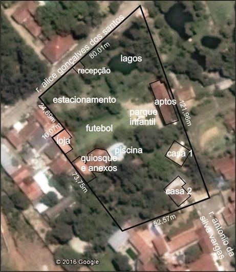 Chácara localizada no centro da Estância Turística de Tremembé, no Vale do Paraíba paulista, próxima a Serra da Mantiqueira, a 30 minutos de Campos do Jordão e a 6 minutos de Taubaté, importante centro econômico do Vale do Paraíba. Localizada no centro da cidade, o lugar é excelente para pousadas, spas, centro de retiro, clube de recreação, escola, pesqueiro e aluguel para eventos com a estrutura existente. O empreendimento, que possui estrutura para pousada, tem 7000 m2 de área de terreno e aproximadamente 1000 m2 de área construída. Áreas residenciais e de dormitórios: • Casa 1 com 100 m2 que possui 2 quartos, mezanino, banheiro, cozinha, estar/jantar, sala de TV, área de serviço e varanda. • Casa 2 com 100 m2 com 3 quartos, sendo 1 suíte, sala de estar, sala de jantar, cozinha, 2 banheiros e área de serviço. • Cozinha e vestiários feminino e masculino com 47 m2. • Salão de jogos e loja de conveniência com 40 m2. • Campo de futebol society. • Parque infantil. • Estacionamento. • Recepção com 25m2. • Lagos e viveiros. • Redários. • Paisagismo com plantas nativas e ornamentais. • Pomar formado com várias espécies de árvores frutíferas. • Abastecida por água de nascente. Também com enorme potencial para empreendimentos imobiliários uma vez que está estrategicamente localizada, sendo possível lotear, criar condomínio residencial ou verticalizar até 10 pavimentos com construção de várias torres, aproveitamento ainda a área de lazer existente.