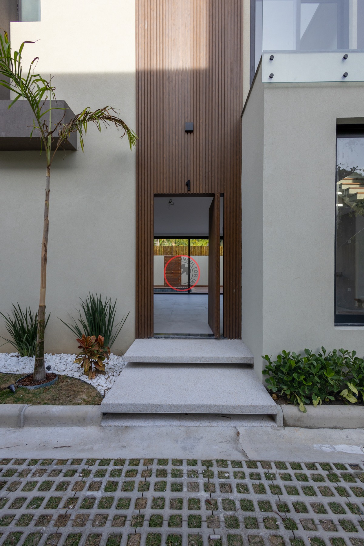 A garagem comporta dois veículos, com espaço adicional para visitantes.