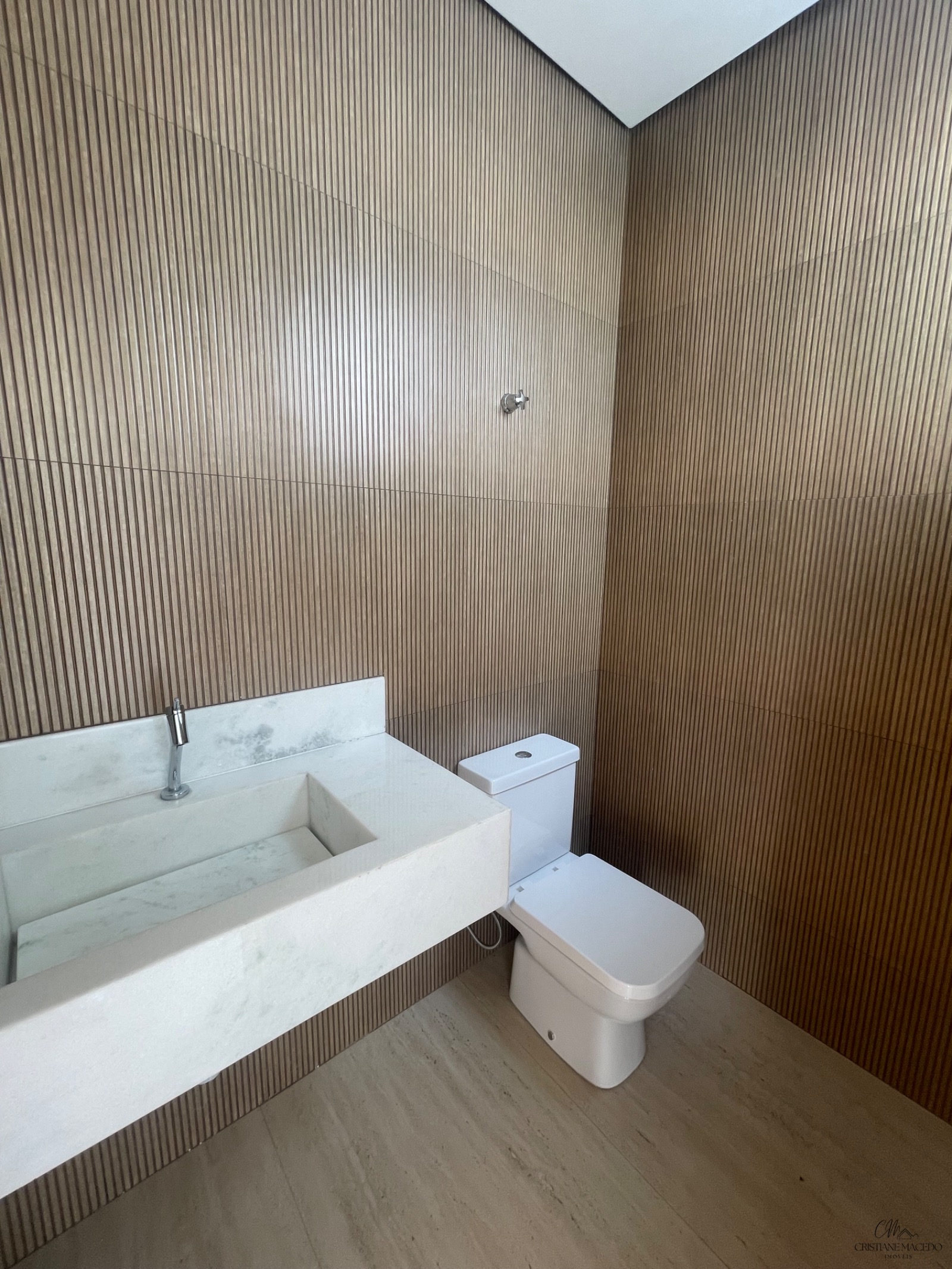 Salão amplo em dois ambientes, com pé direito alto, e lavabo;