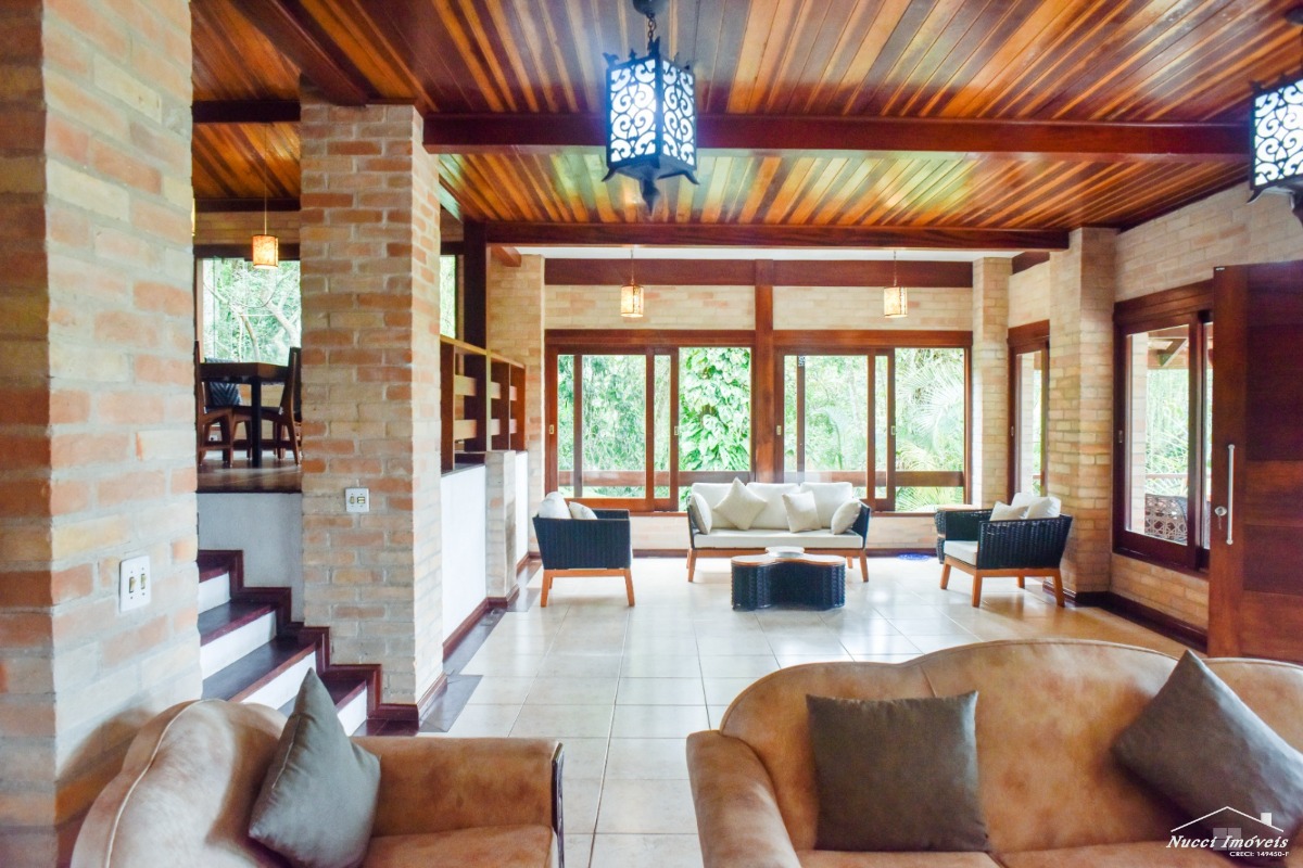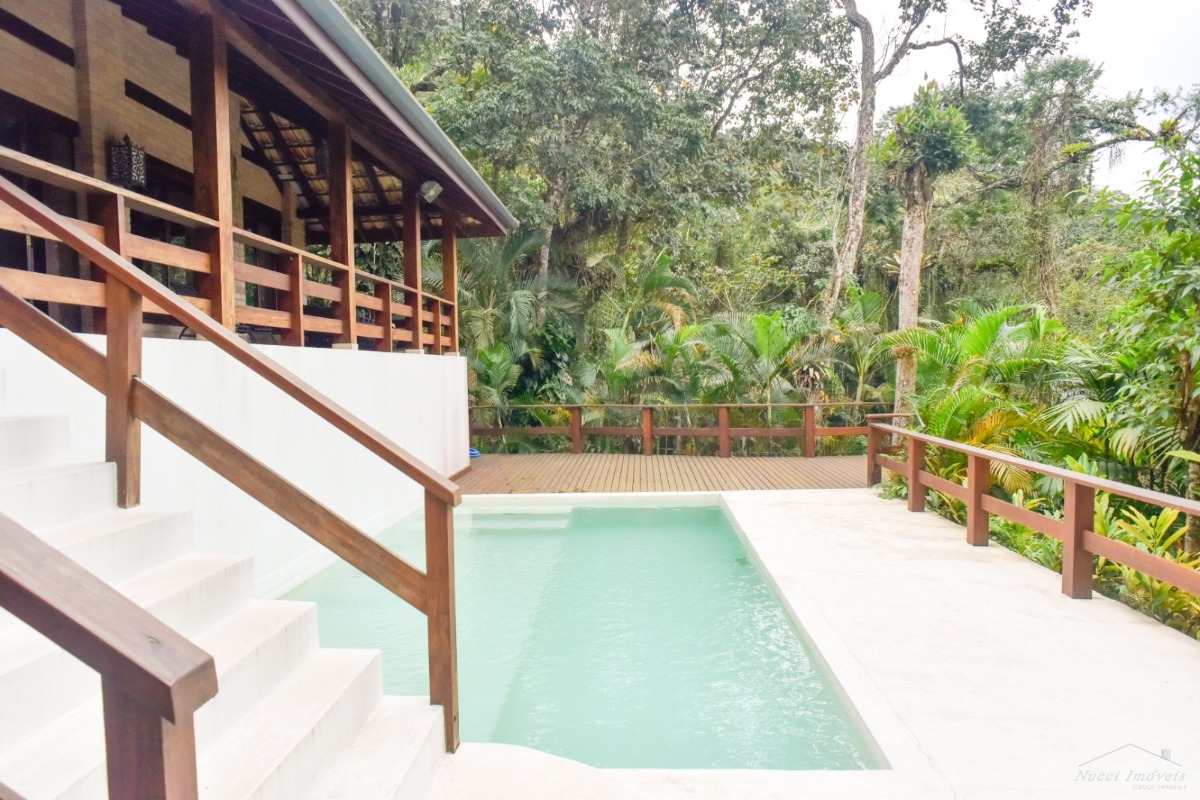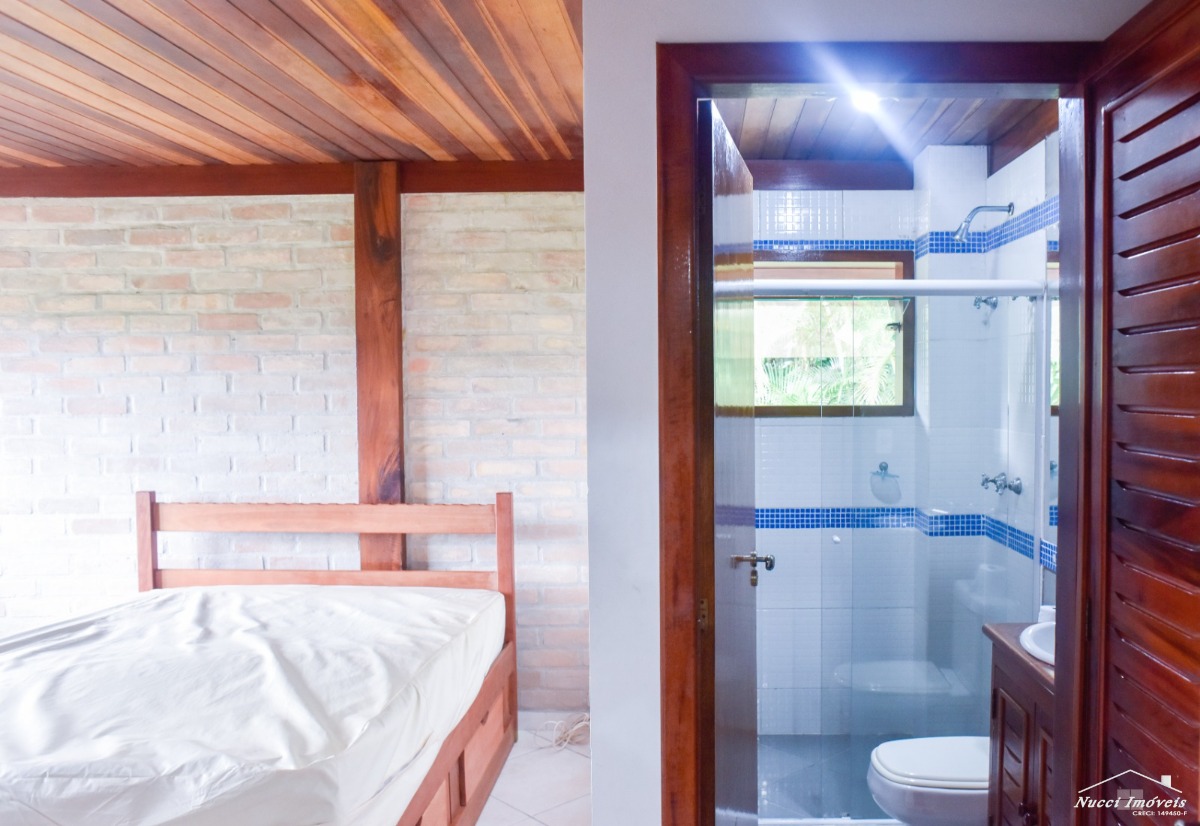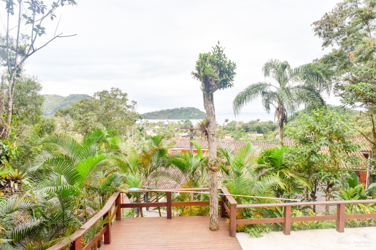 Excelente casa entre a Mata Atlântica e o Mar, localizada numa das praias mais lindas e tranquila de Ubatuba ,com cinco suítes, três delas localizadas no andar superior, com vista para o mar, e outras duas no piso inferior, cozinha moderna e pratica ,sala de almoço/jantar ,de estar, de TV, conjugadas com uma varanda em volta ,tendo uma das vistas ,entre as copas e o mar verdadeiramente, maravilhosa, lavabo, área de serviço, no andar inferior piscina , sauna, ducha ao ar livre, churrasqueira, vaga para quatro autos, sendo duas cobertas. Condomínio seguro e com portaria de serviços de praia exclusivo para os moradores.