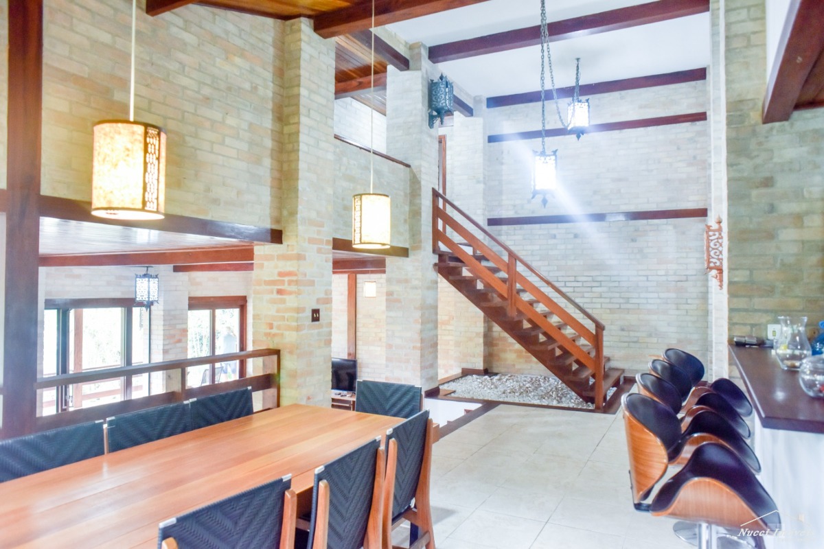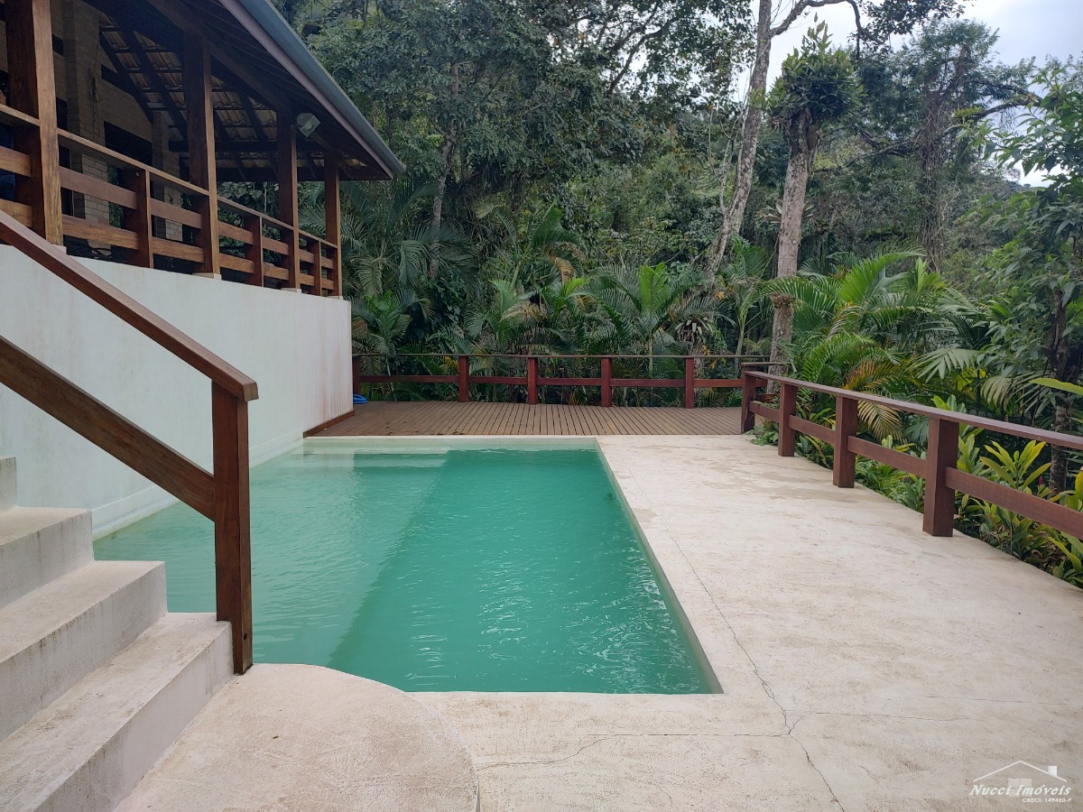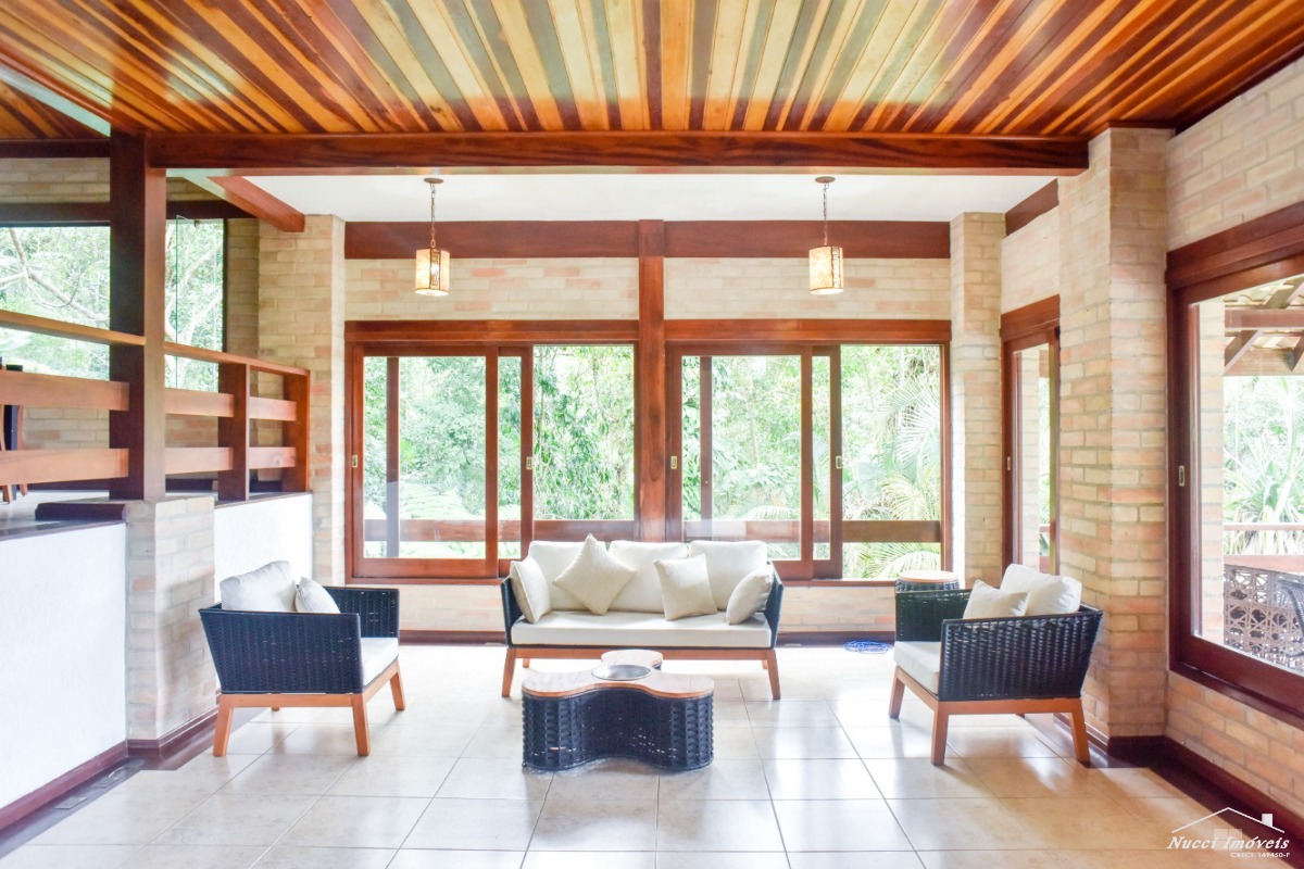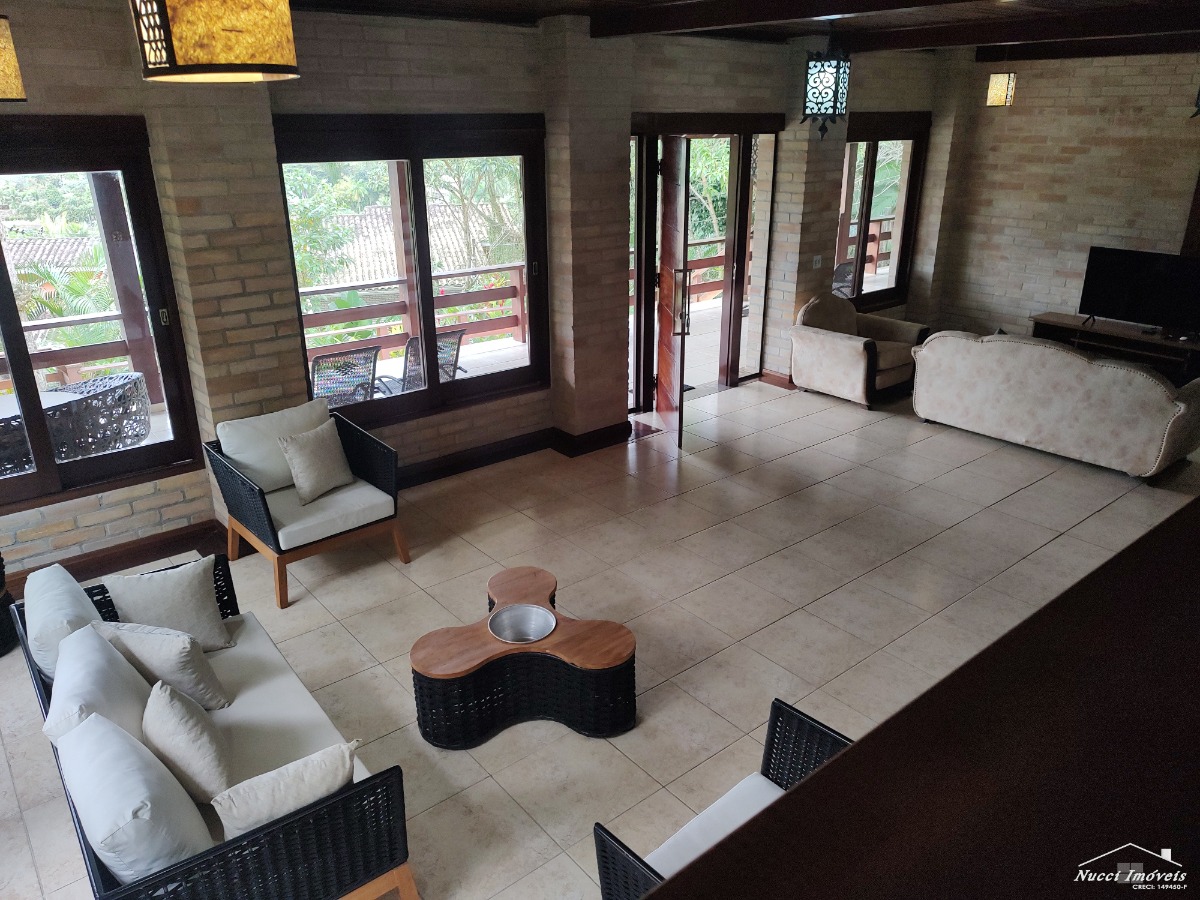 Excelente casa entre a Mata Atlântica e o Mar, localizada numa das praias mais lindas e tranquila de Ubatuba ,com cinco suítes, três delas localizadas no andar superior, com vista para o mar, e outras duas no piso inferior, cozinha moderna e pratica ,sala de almoço/jantar ,de estar, de TV, conjugadas com uma varanda em volta ,tendo uma das vistas ,entre as copas e o mar verdadeiramente, maravilhosa, lavabo, área de serviço, no andar inferior piscina , sauna, ducha ao ar livre, churrasqueira, vaga para quatro autos, sendo duas cobertas. Condomínio seguro e com portaria de serviços de praia exclusivo para os moradores.