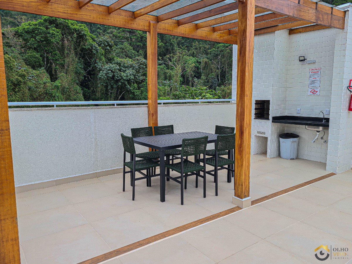 A varanda gourmet com churrasqueira é um dos grandes destaques, ideal para momentos de lazer e convivência.