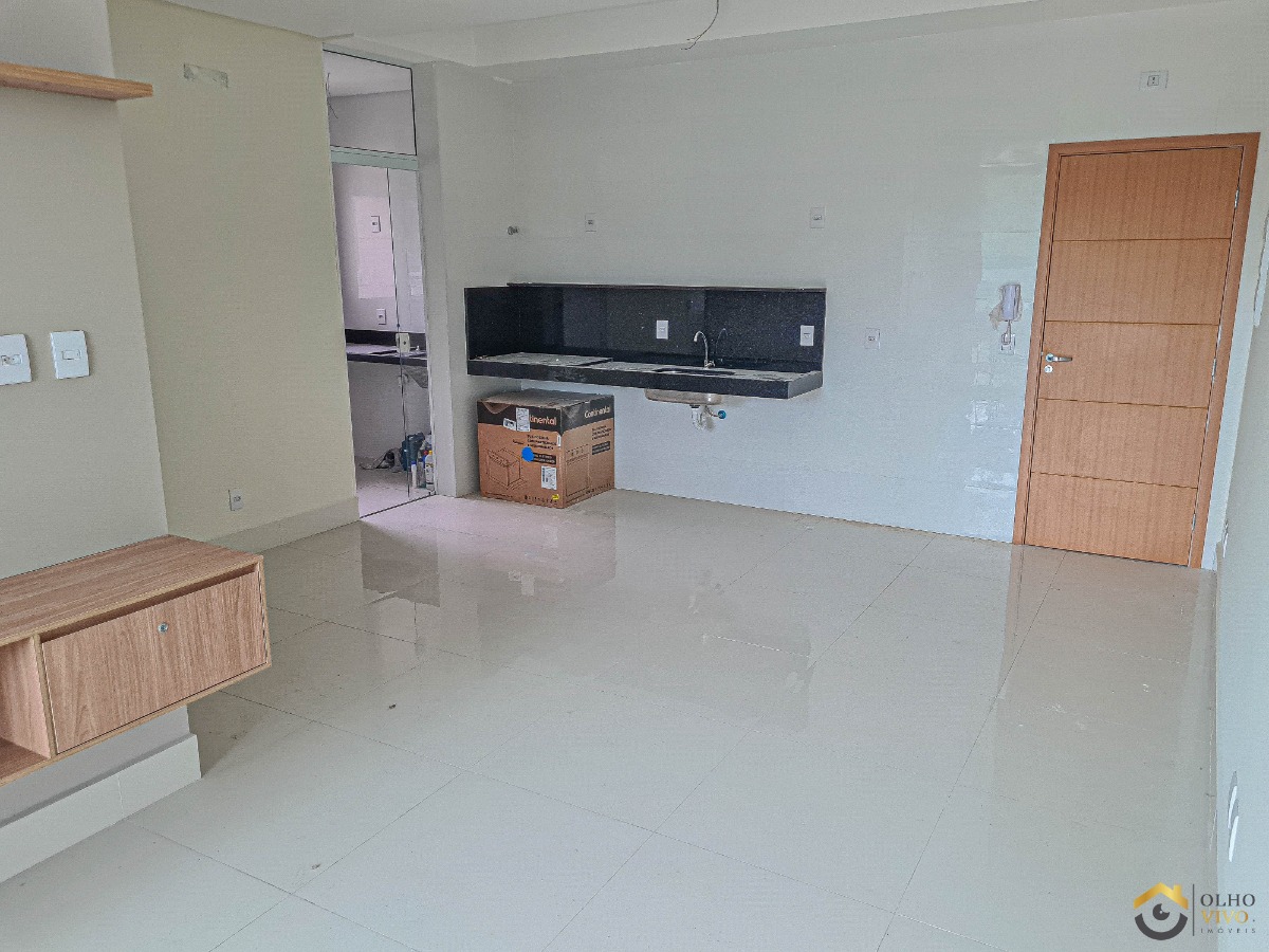 A área social integra sala de estar e sala de jantar, criando um ambiente moderno, funcional e bem ventilado.