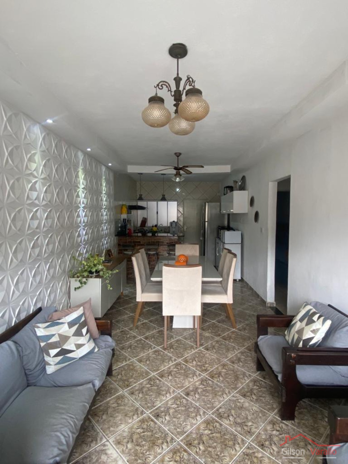 A casa principal possui sala conjugada com a cozinha, 2 dormitórios sendo 1 suíte, banheiro social e área de serviço.