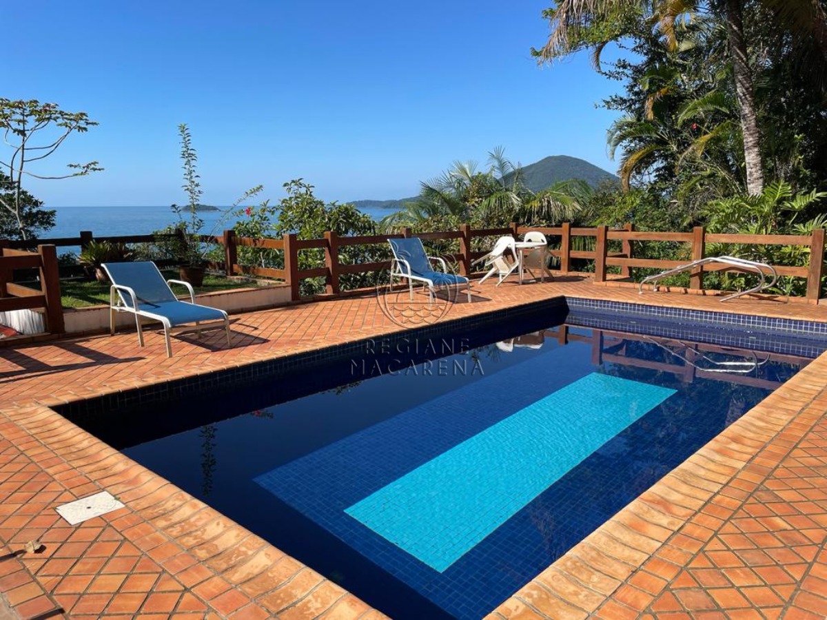 Linda casa de costeira, com vista para o mar aberto e a ilha Anchieta com uma área do terreno de 1070 m² e uma área de preservação ambiental de aproximadamente 800 m² com acesso direto até o mar, e área total de 1870 m².