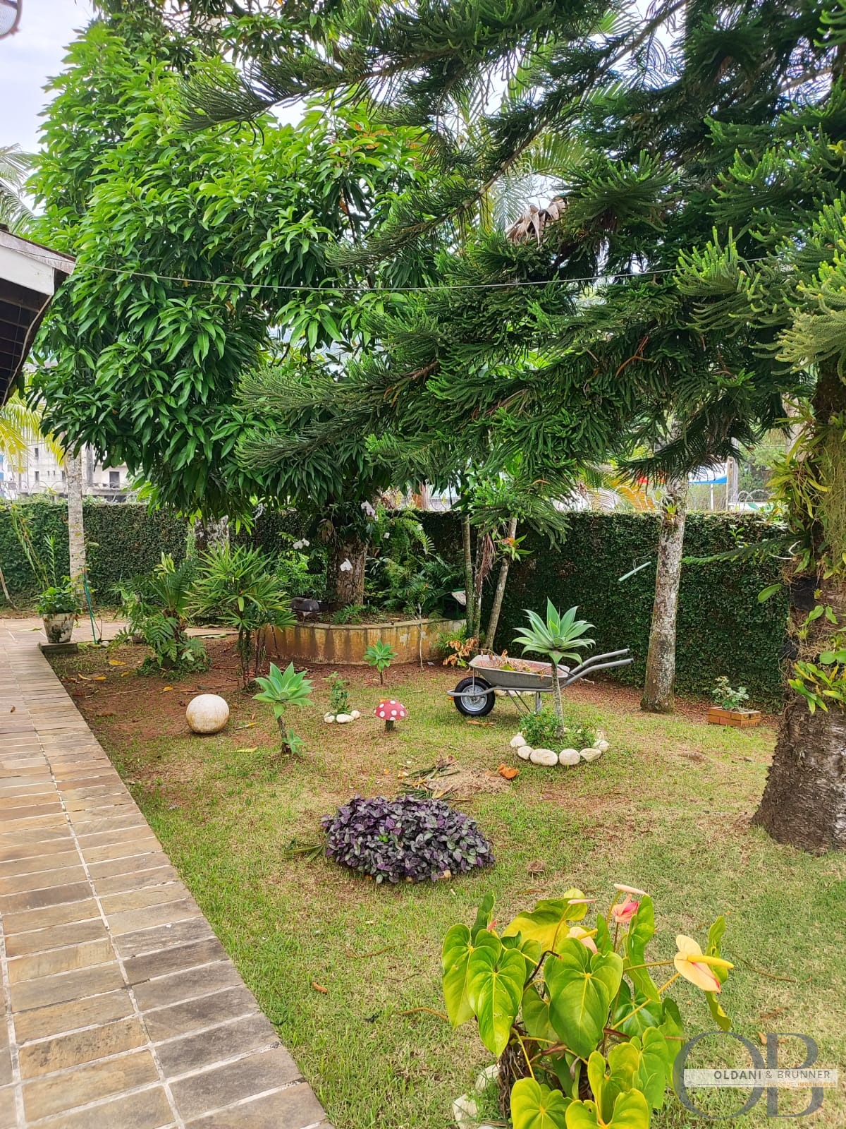 Quintal espaçoso e jardim bem cuidado