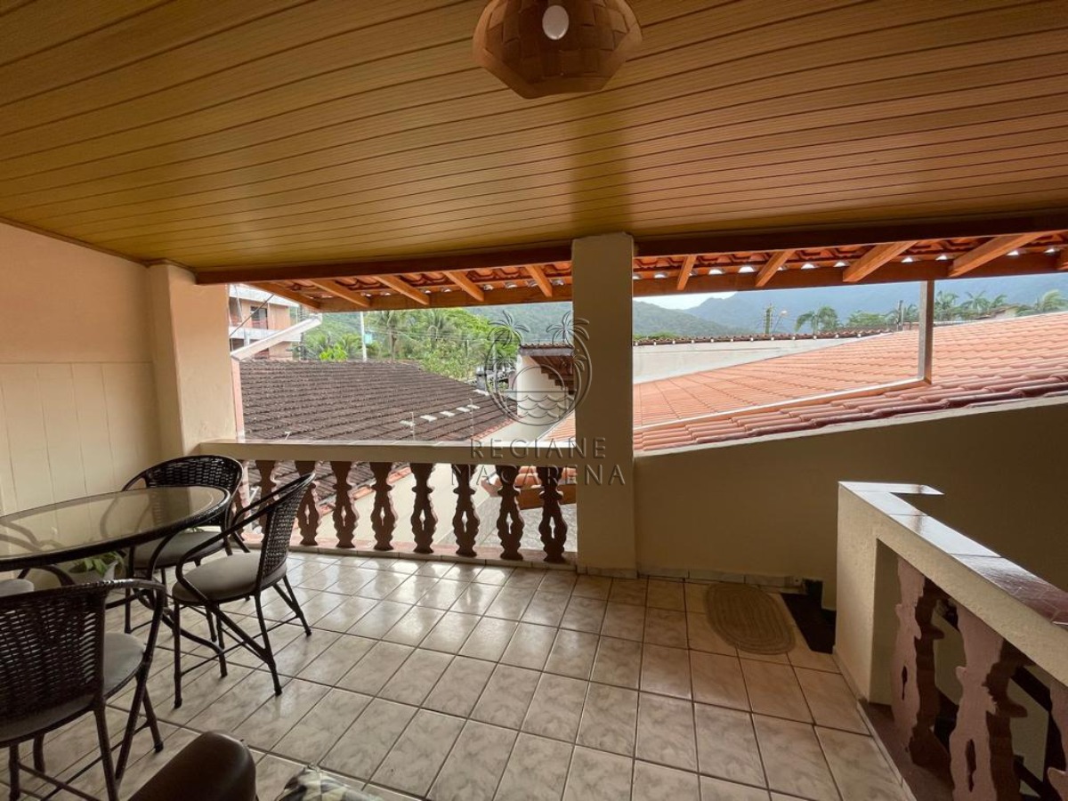 Casa no bairro Perequê Açu em Ubatuba, possui 5 dormitórios sendo 1 suíte, 4 banheiros (sendo 1 da suíte), 3 vagas de garagem (sendo 1 coberta) , sala de jantar, sala de estar, varanda, cozinha, lavanderia e ventiladores.