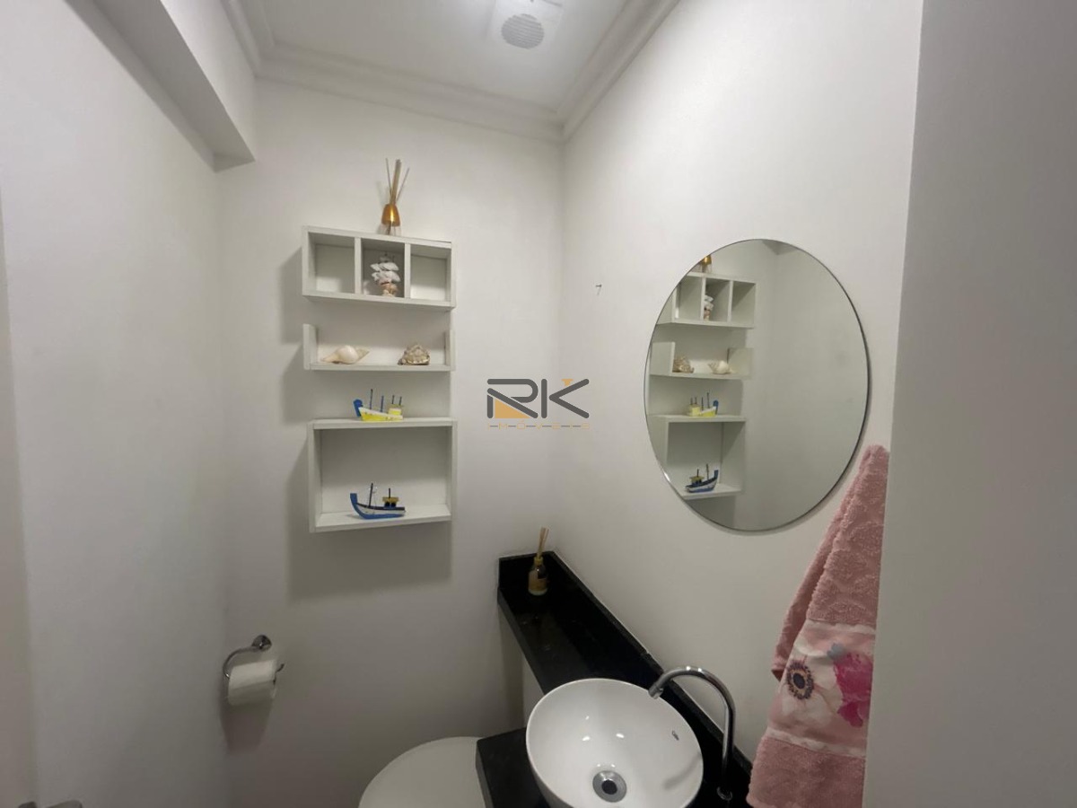 O imóvel conta com sala dois ambientes estar e jantar. A cozinha é funcional, com acesso à lavanderia, e o lavabo complementa a área social trazendo mais comodidade.