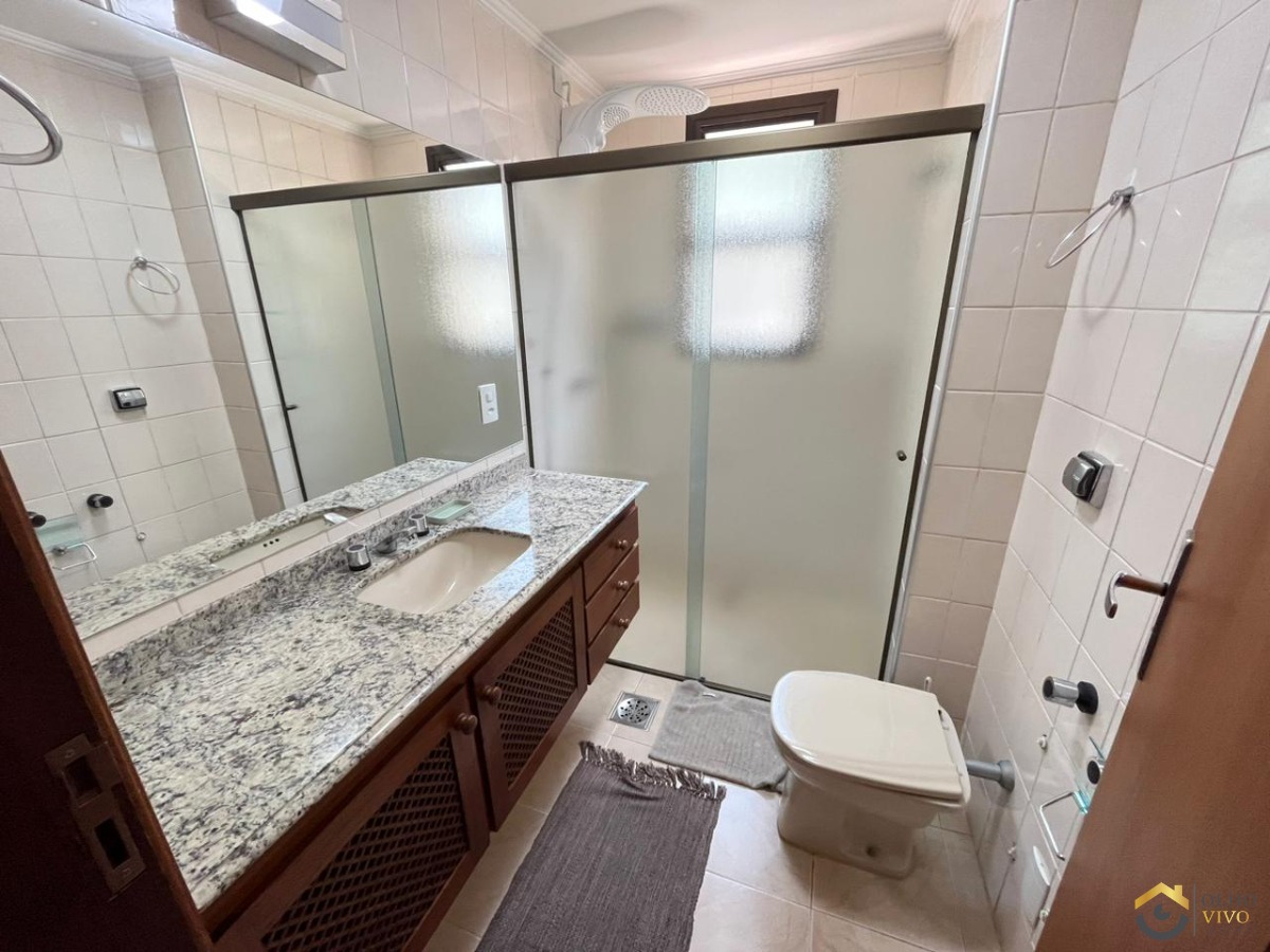 O apartamento é muito bonito e espaçoso. Possui uma sala com ótimo tamanho, cozinha e área de serviço espaçosa, dois quartos comuns com sacada que vai até a sala, um banheiro e uma suíte com sacada privada. Todos os quartos possuem ar condicionado.