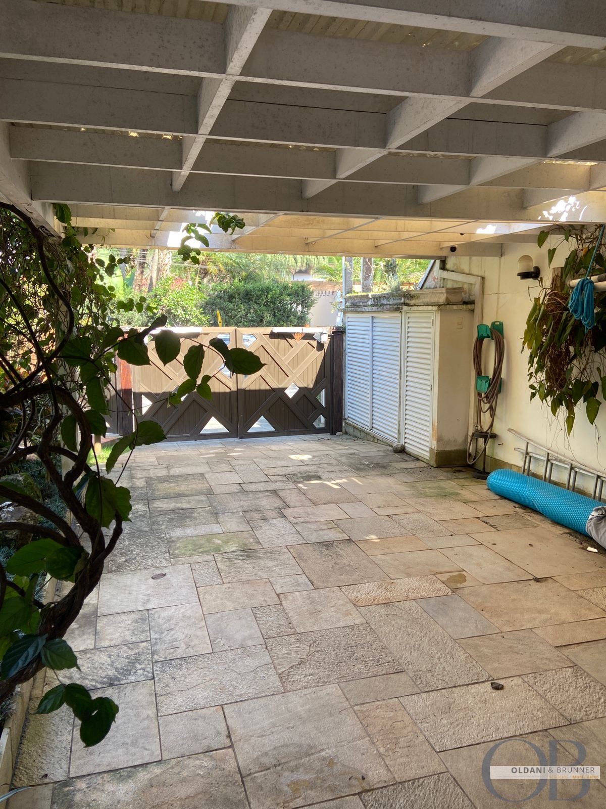 Vaga de garagem coberta com pergolado e portão automático