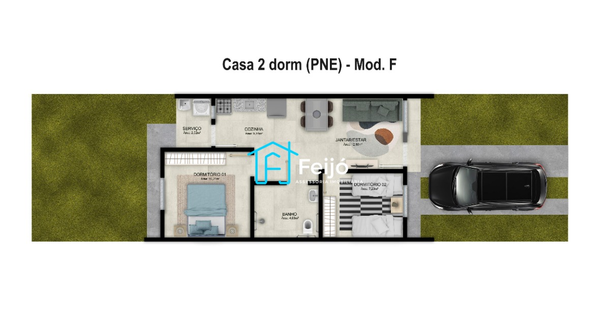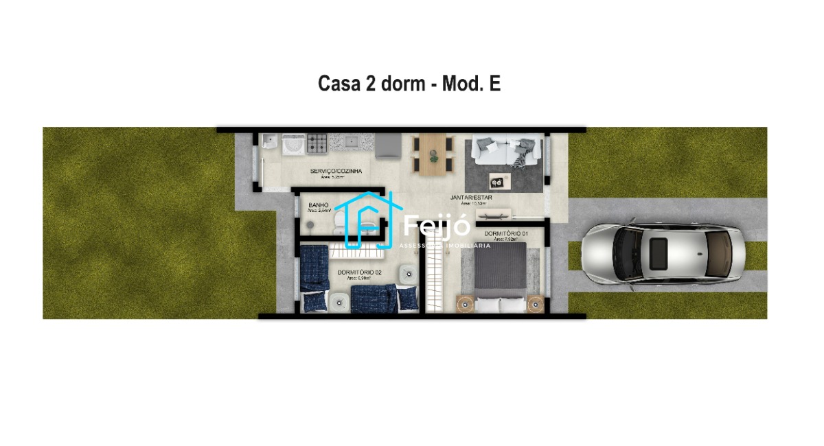 - Casas de 2 dormitórios com pátio.