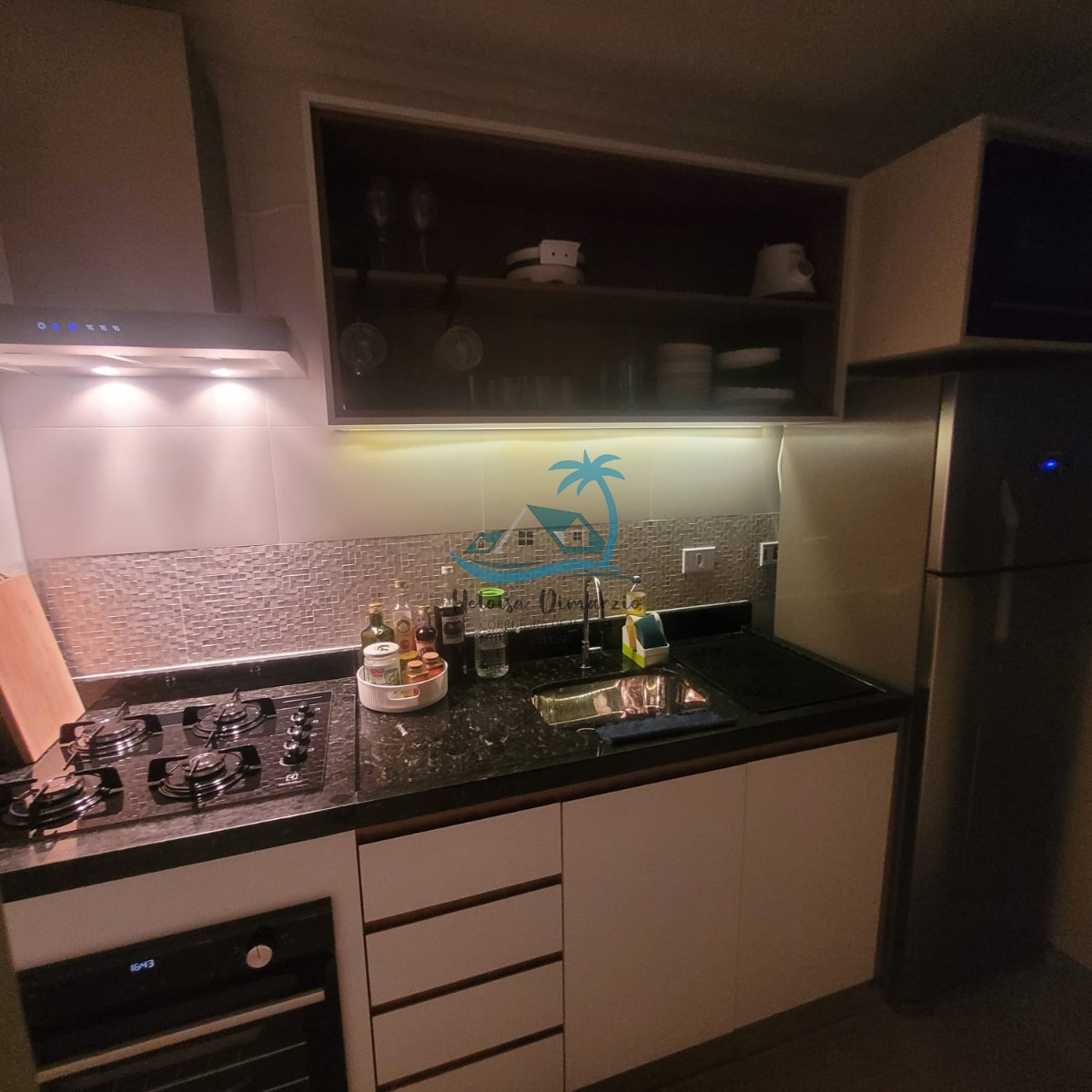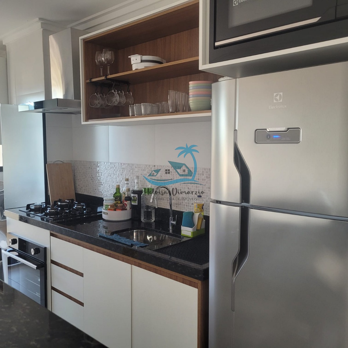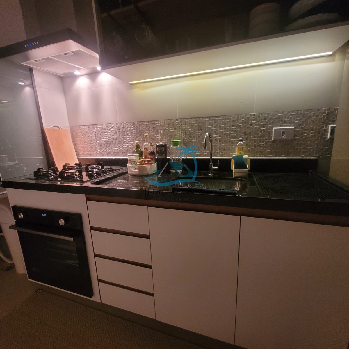 Cozinha em conceito aberto, sala 2 ambientes, varanda gourmet com churrasqueira, área de serviço, armário náutico e garagem coberta para 2 carros.