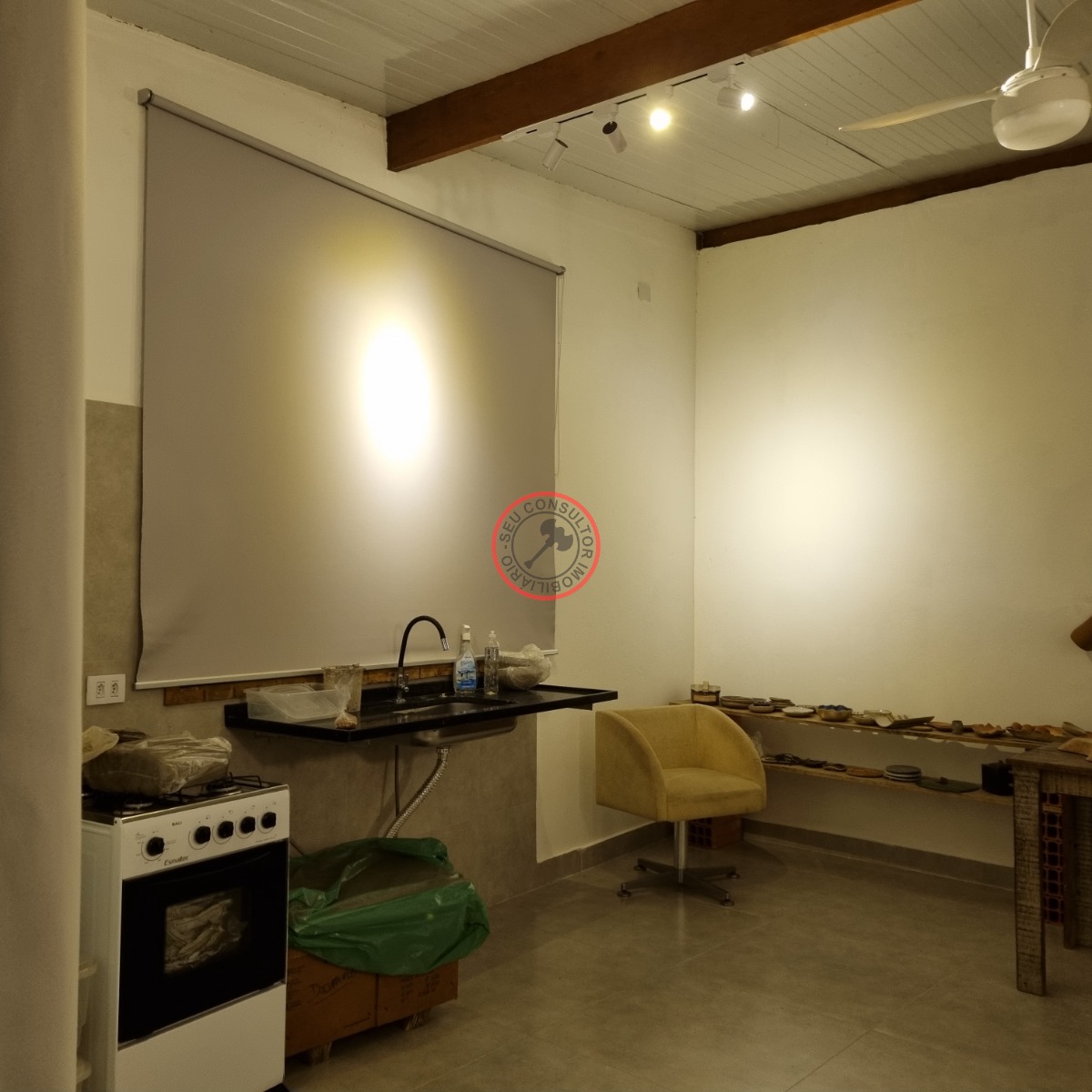 * cozinha , sala em ambiente amplo no bloco anexo