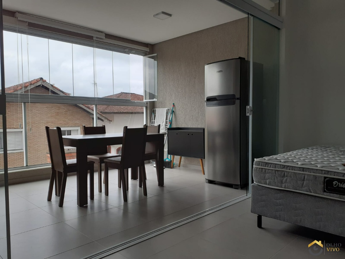 - Este Studio apresenta um layout funcional, composto por um dormitório, um banheiro completo e uma aconchegante varanda gourmet com churrasqueira, proporcionando momentos agradáveis de privacidade.