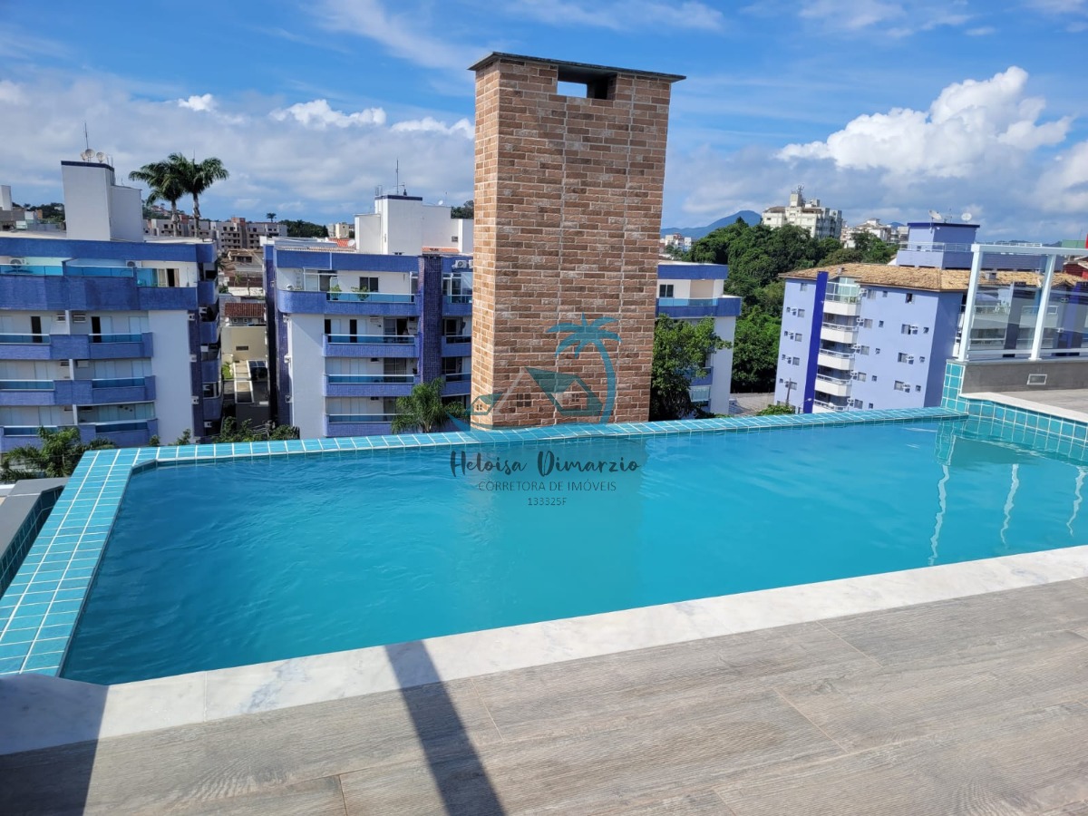 O condomínio conta com elevador e piscina com borda infinita e vista para o mar.