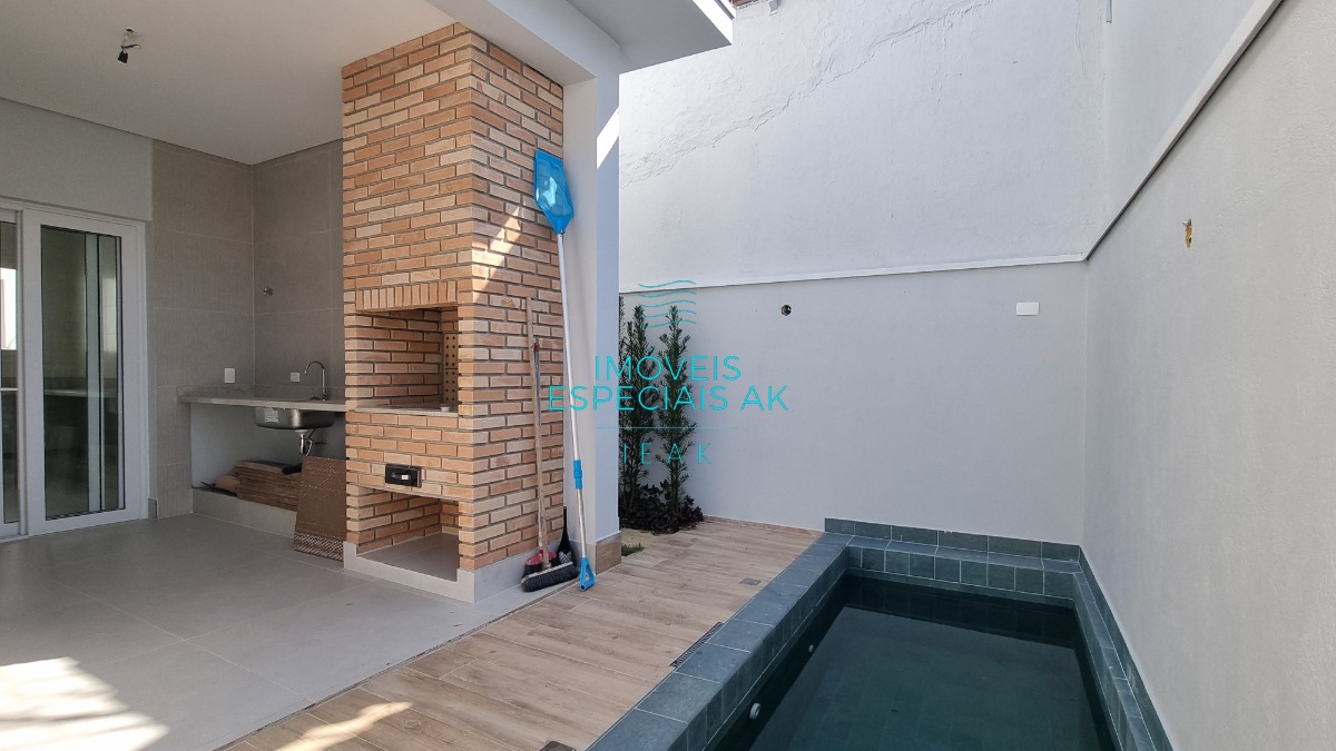 Entre suas inúmeras comodidades, a casa inclui uma pequena piscina refrescante e um jardim gramado, além de uma área de churrasqueira coberta, perfeita para momentos de lazer entre familiares e amigos. O quintal e a sacada proporcionam espaços adicionais para relaxar e apreciar o entorno. Outras características incluem cozinha ampla, área de serviço, espaço para home office, e sistema de aquecimento elétrico (boiler).