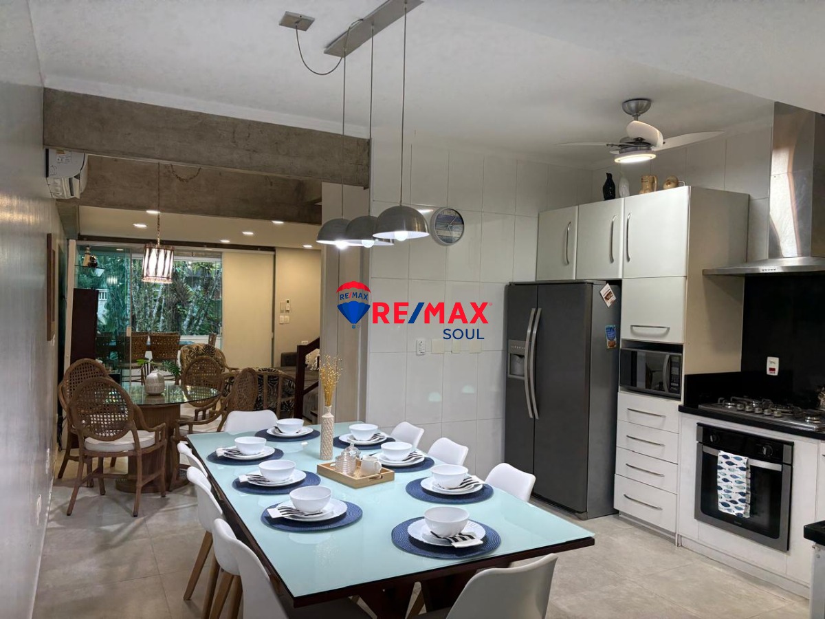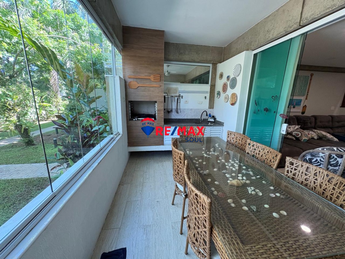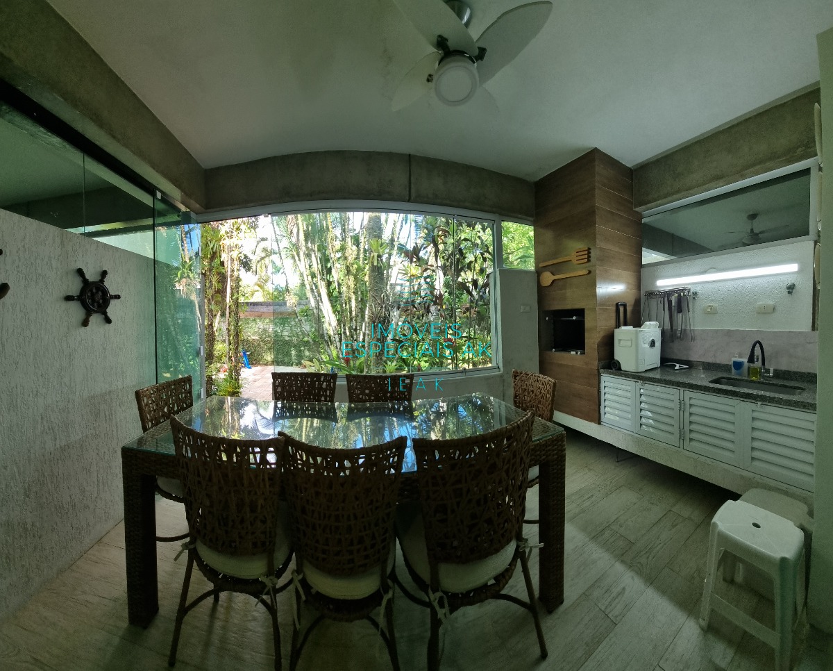 Excelente opção no Litoral Norte de São Paulo, na linda praia de Barra do Una, em condomínio com excelente localização, a cerca de 200 metros da areia! A casa de 3 suítes está mobiliada e é extremamente bem ventilada e arejada! Possui sala de estar, jantar e cozinha totalmente integrados, além de lavabo, área de serviço e a churrasqueira com vista para o jardim.