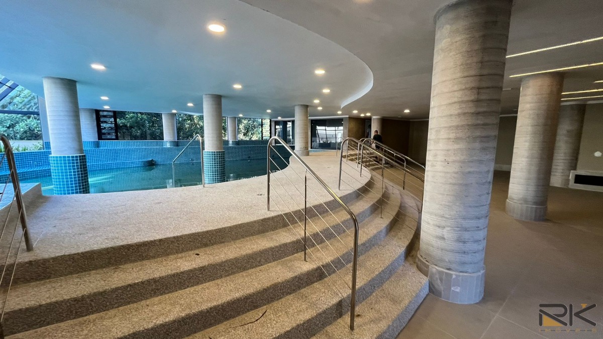 A lavanderia é discretamente localizada, garantindo praticidade sem comprometer a estética dos ambientes. O apartamento conta com um lavabo adicional, oferecendo comodidade para as visitas.
