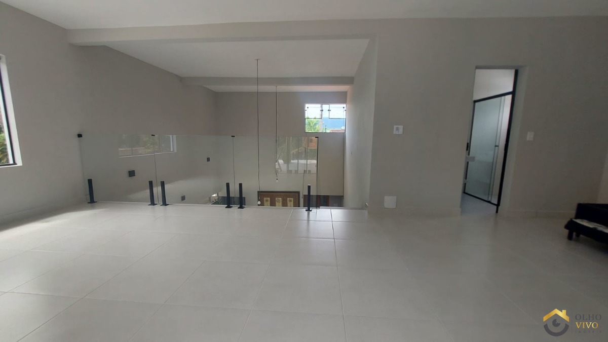 A área social inclui uma sala de estar espaçosa, uma sala de jantar integrada e uma cozinha com conceito aberto e móveis planejados, criando um ambiente moderno e acolhedor. A casa ainda conta com um mezanino, ampliando ainda mais o espaço disponível.