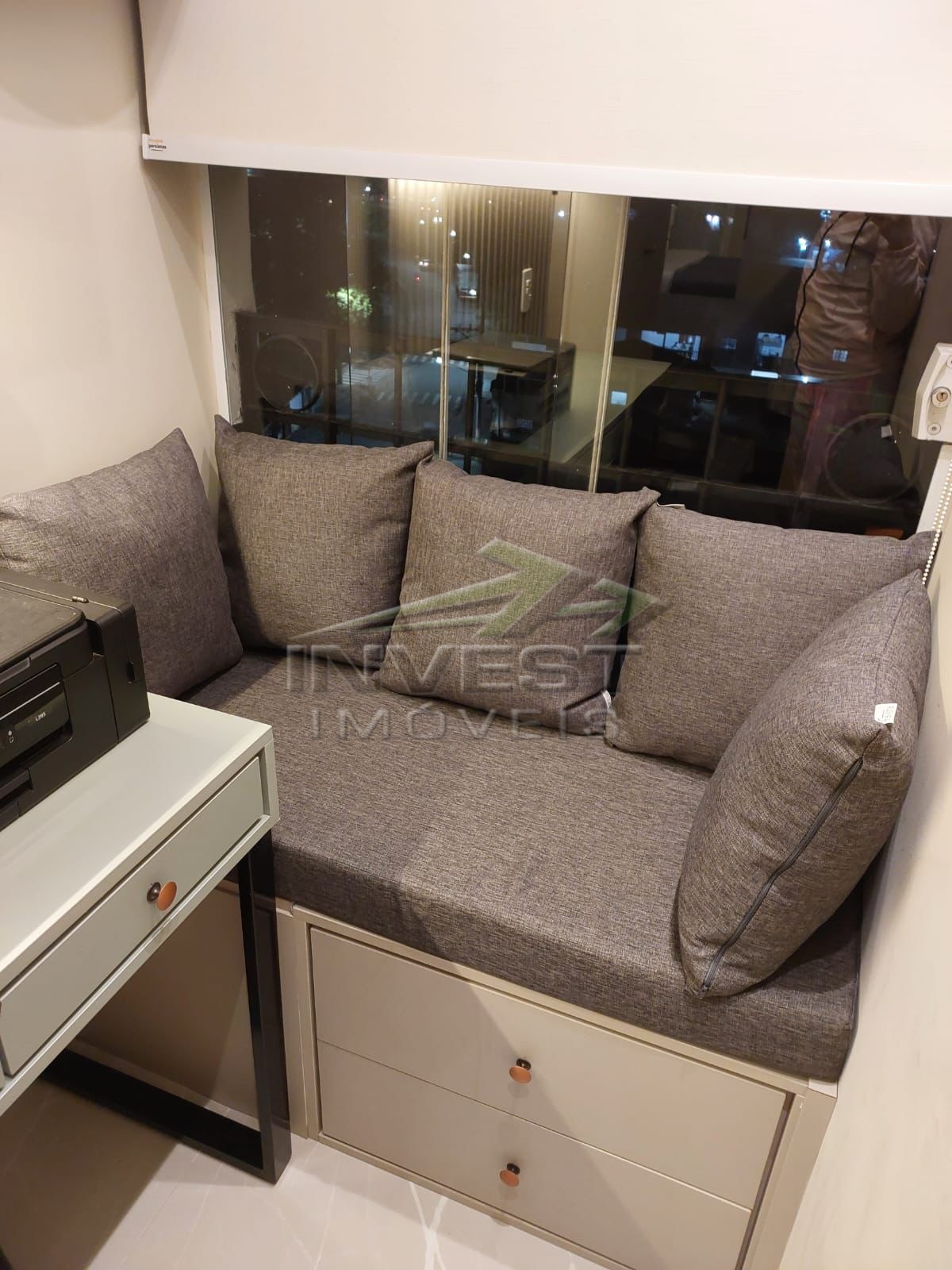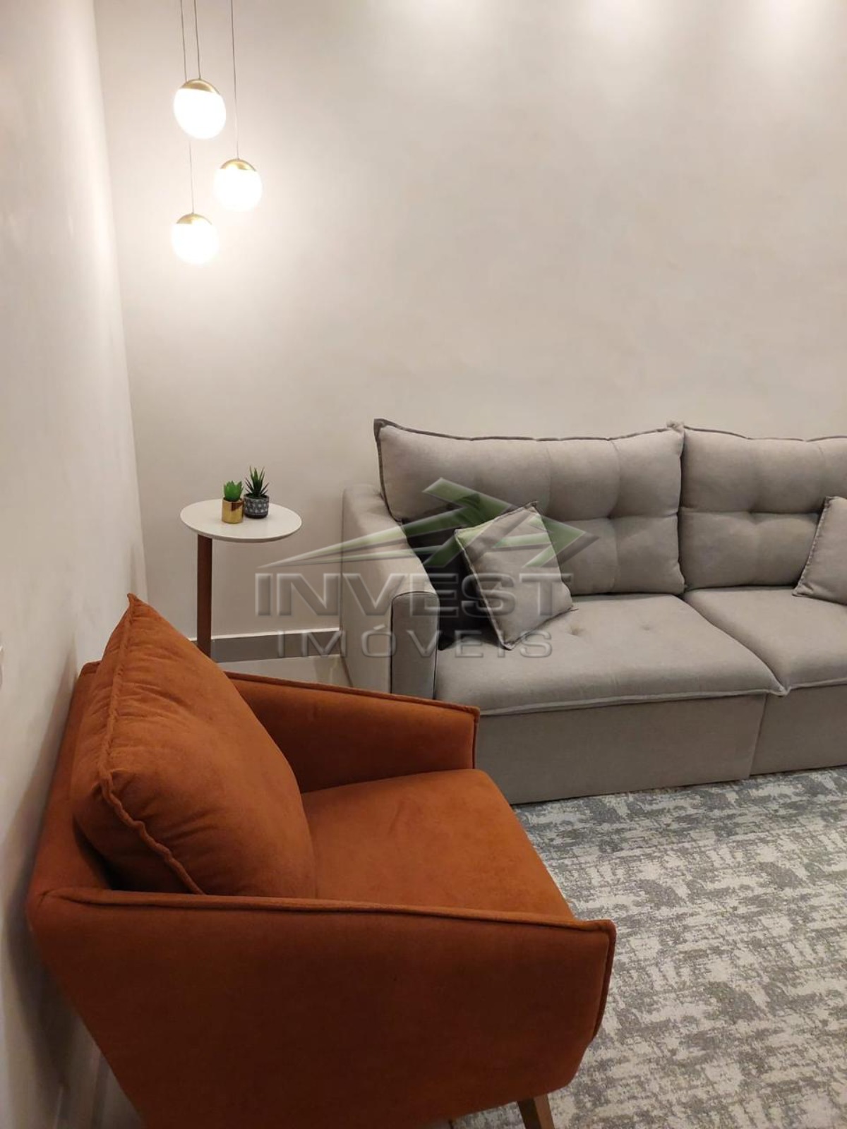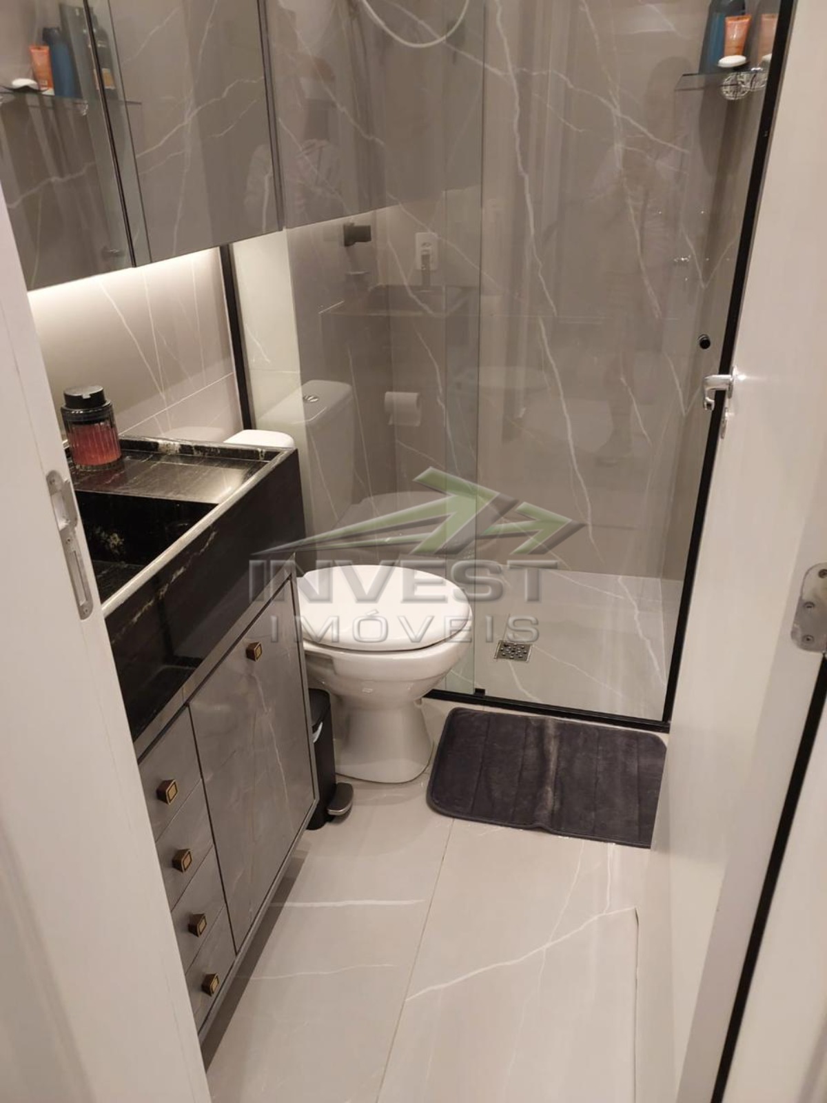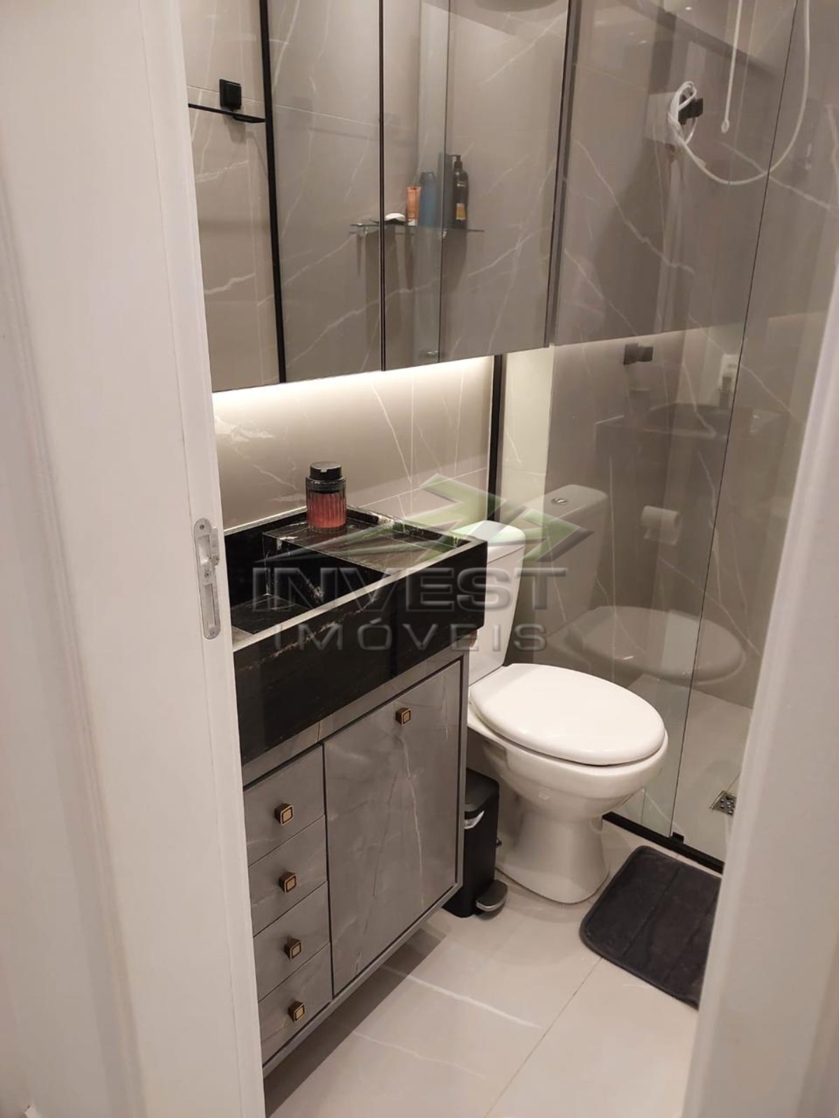 O imóvel é mobiliado e conta com armários de cozinha e embutidos, além de um closet que garante organização.