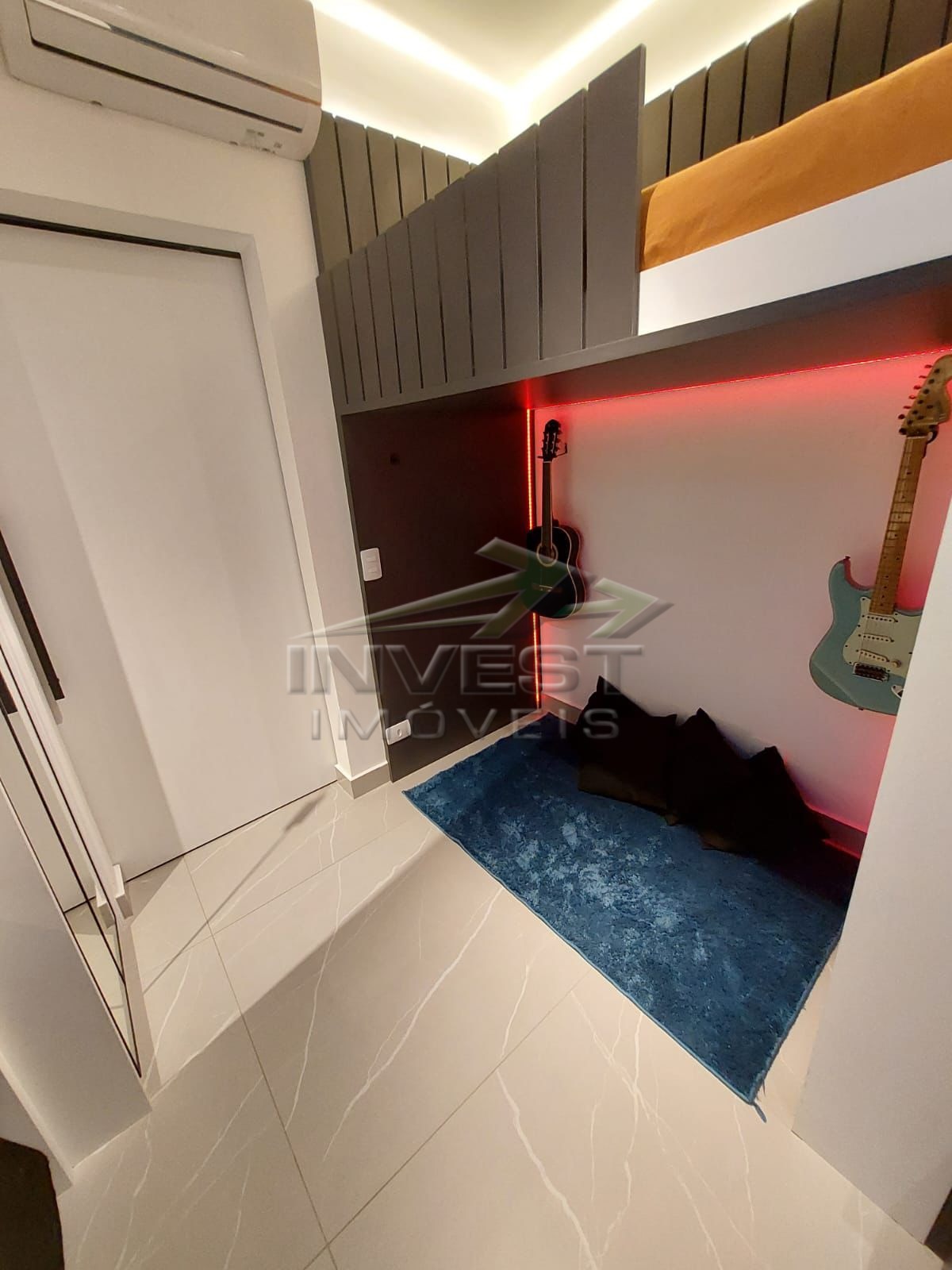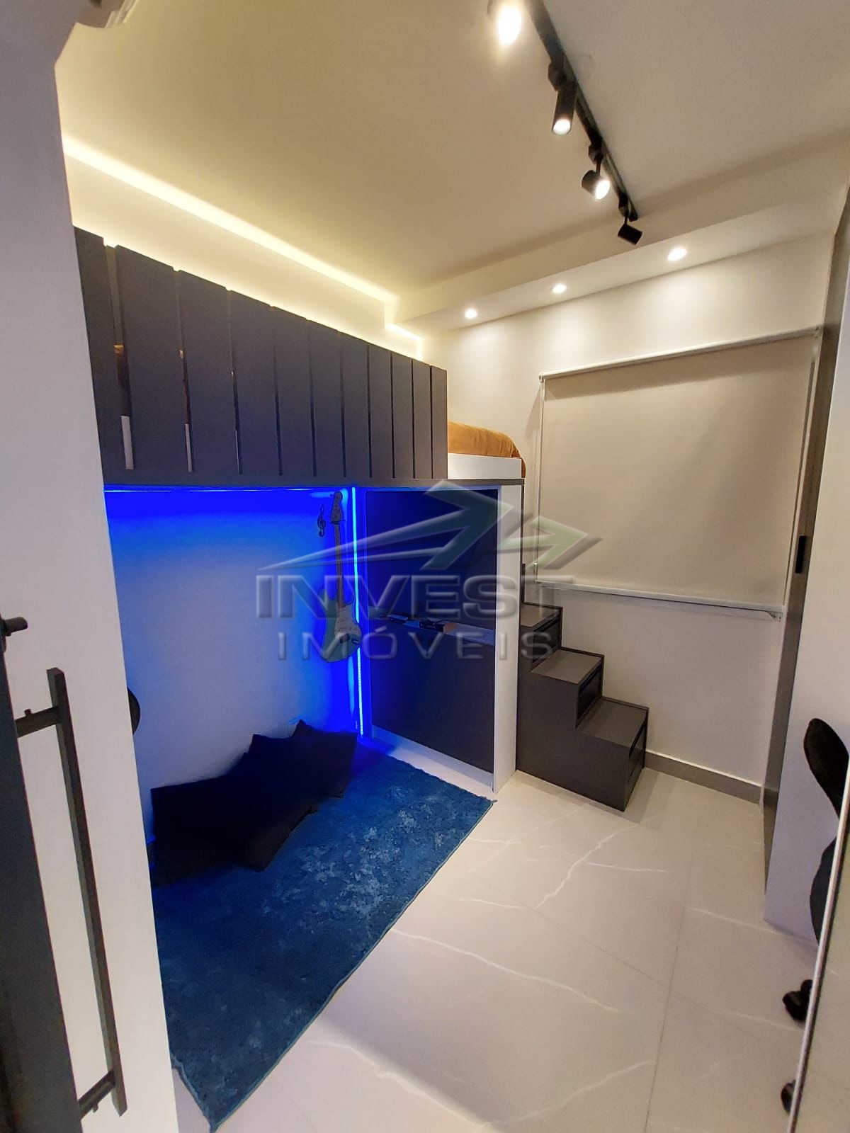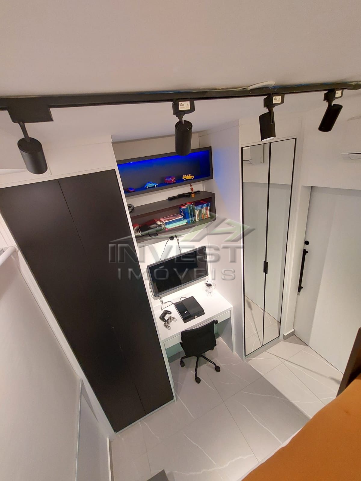 O apartamento ainda possui um mezanino, escritório, lavabo e área de serviço, além de ar condicionado e ventiladores para maior conforto.