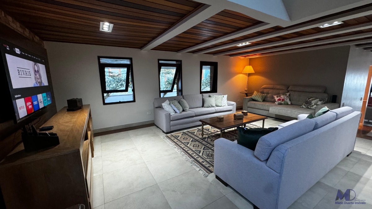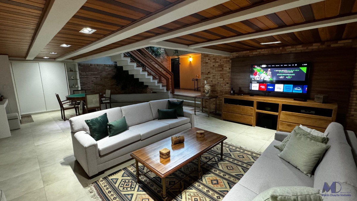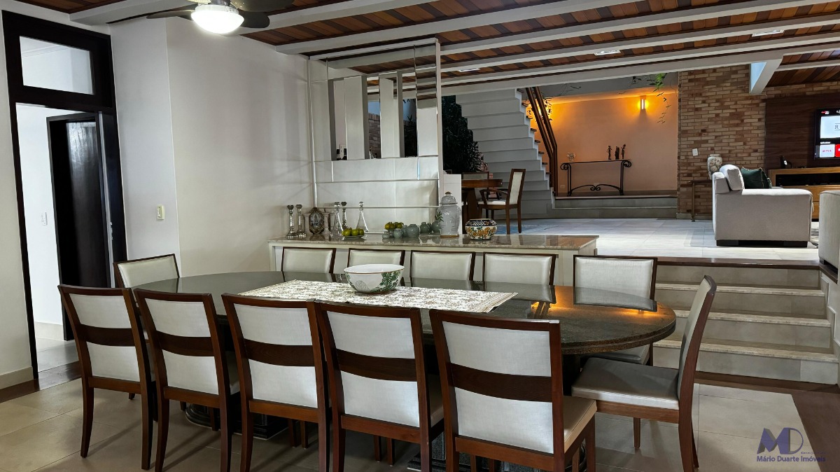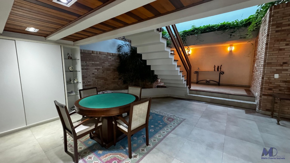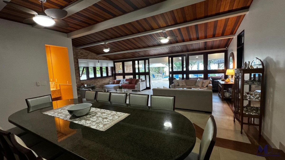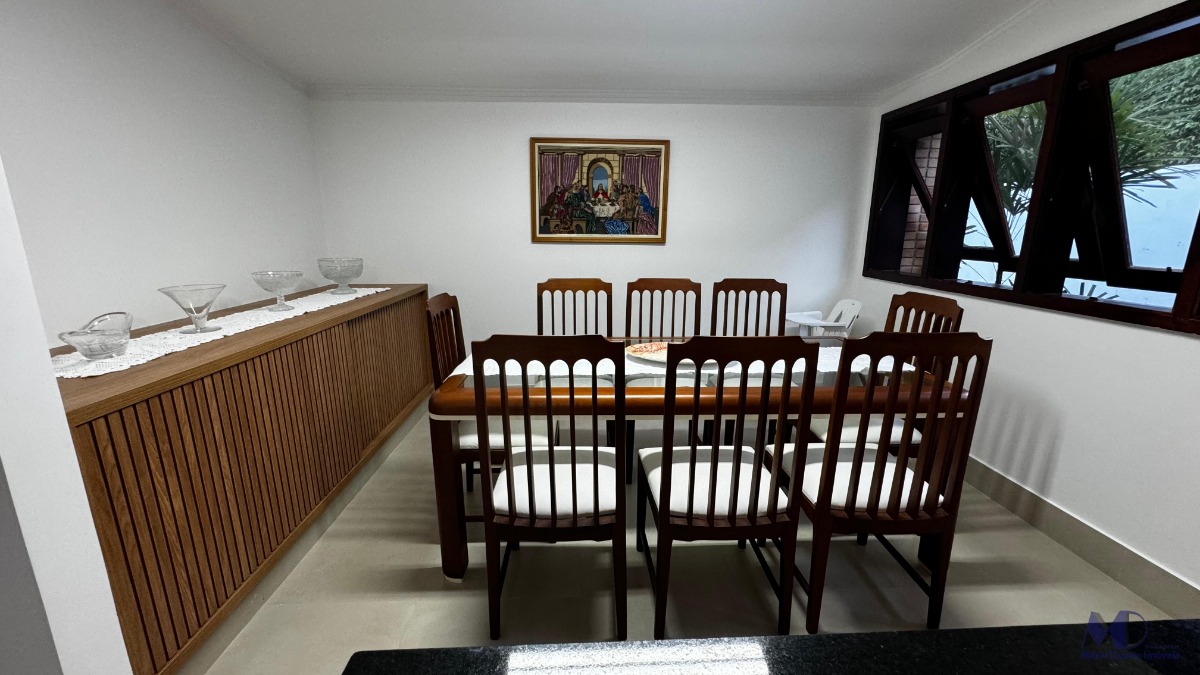 O imóvel conta com 6 dormitórios, sendo 2 suítes com jacuzzi, sala com 3 ambientes, cozinha, copa, jardim de inverno, área de lazer completa com mesa de bilhar e churrasqueira, piscina com hidromassagem, finamente acabada e mobiliada.