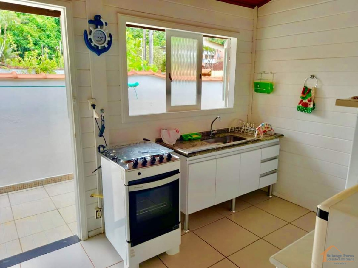 A cozinha é equipada com armários, proporcionando organização e funcionalidade.