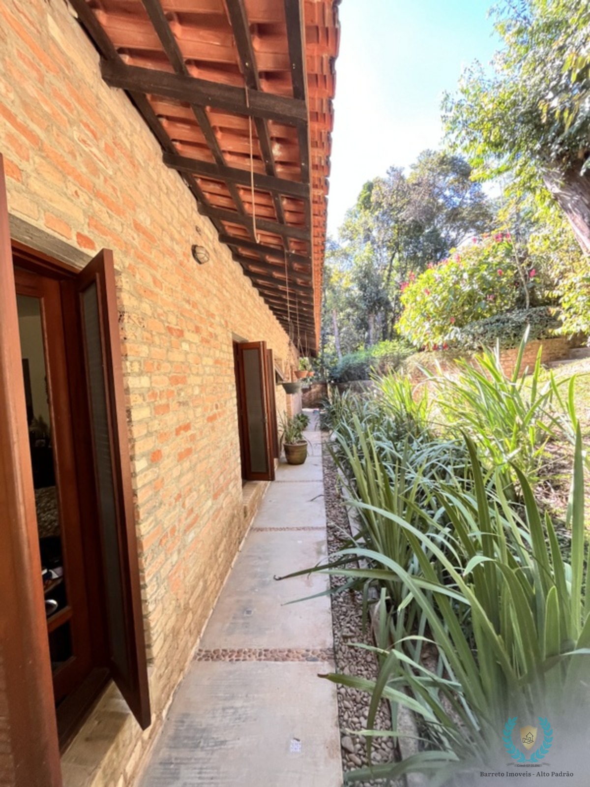 Esquadrias e portas todas em madeira maciça, proporcionando charme e durabilidade