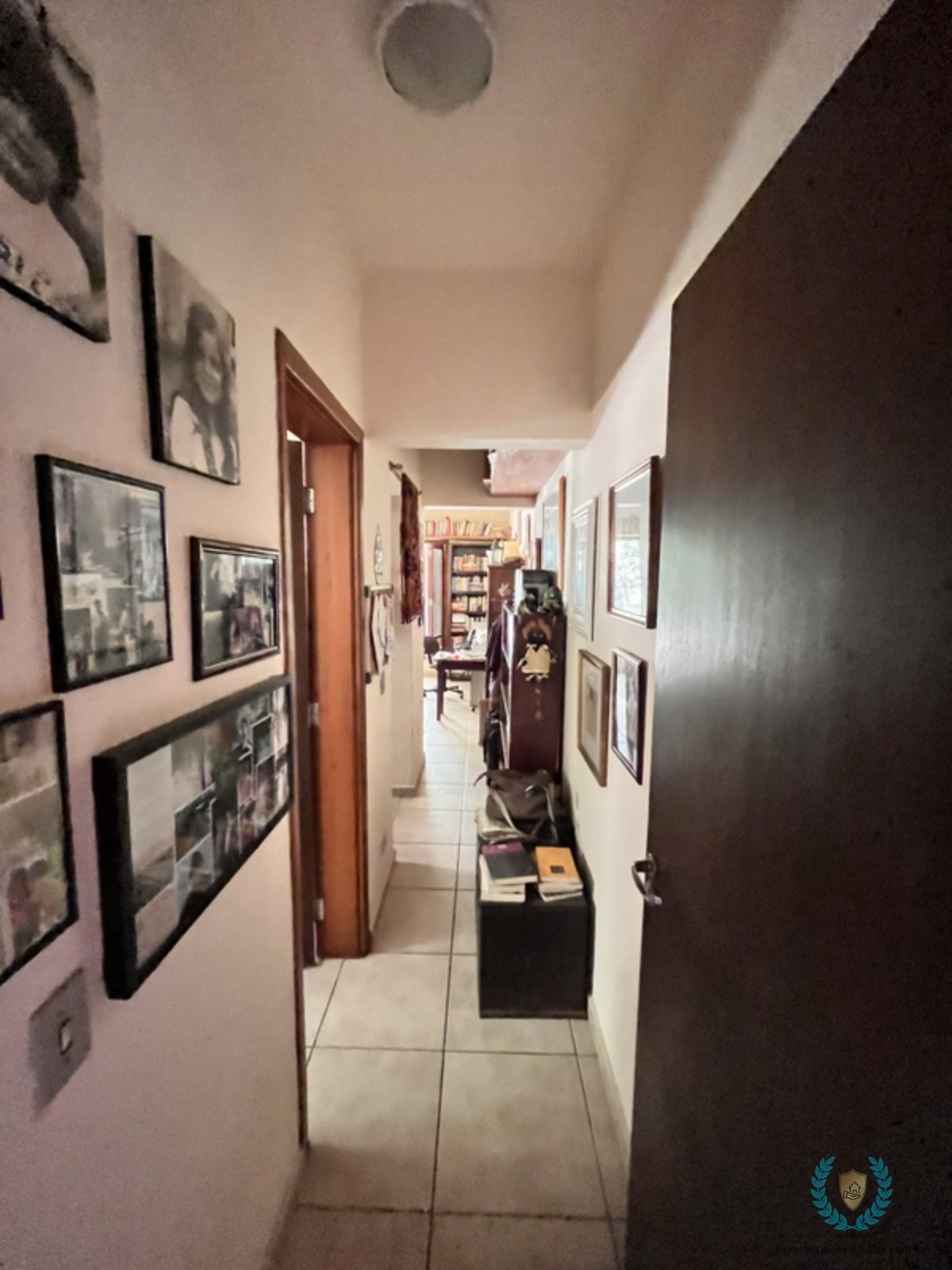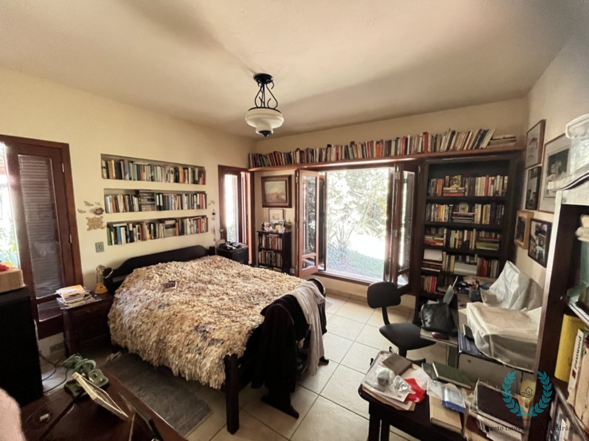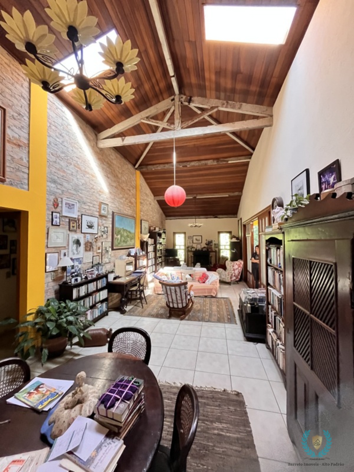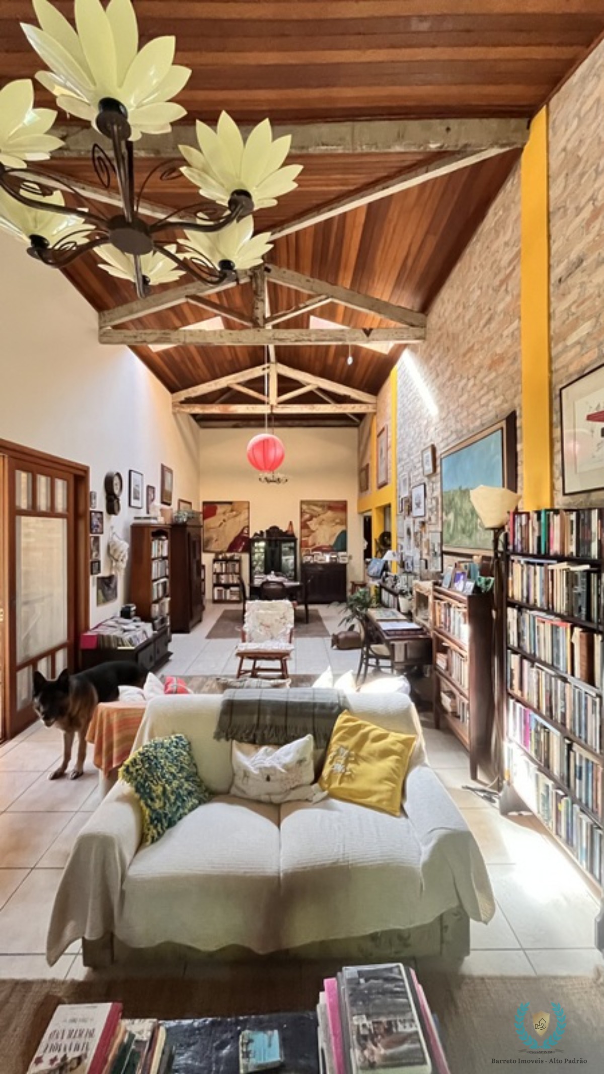 Decorado com muitos livros e obras de arte, criando uma atmosfera de livraria particular