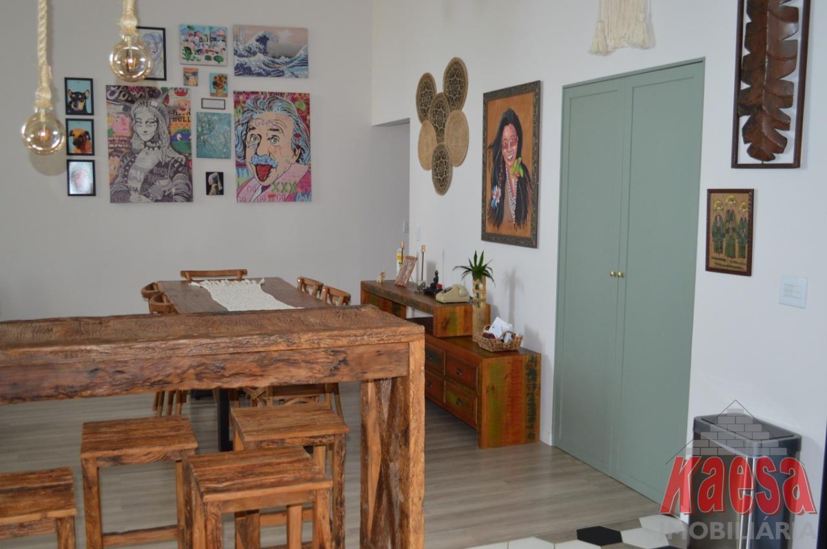 Sala: Sala de estar e jantar espaçosa com pé direito alto, criando uma sensação de amplitude e luminosidade. Cozinha conceito aberto.