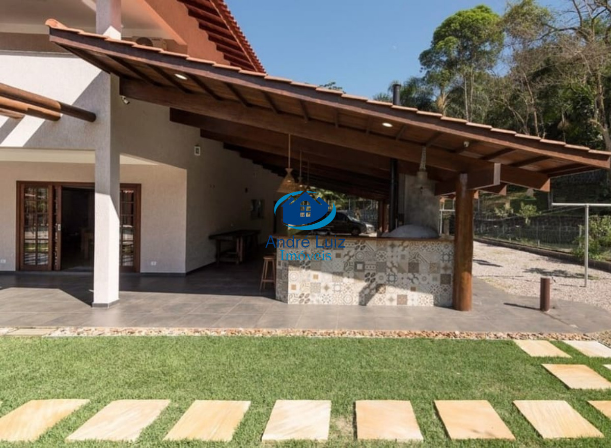 São 4 suítes superior, 2 dormitórios embaixo com 2 banheiros, lavabo, sala para dois ambientes, sala de TV e jogos, sala de jantar, cozinha, despensa, lavanderia, cozinha gourmet na área externa com churrasqueira e forno de Pizza.
