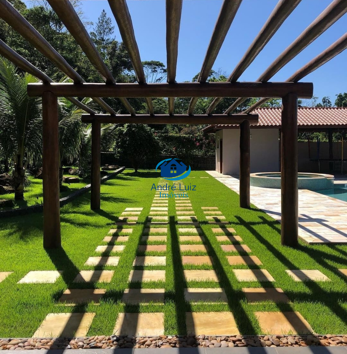 Piscina medindo 80 Mts com spa, sala de Festa, mini Campo de Futebol, lago de Carpas.