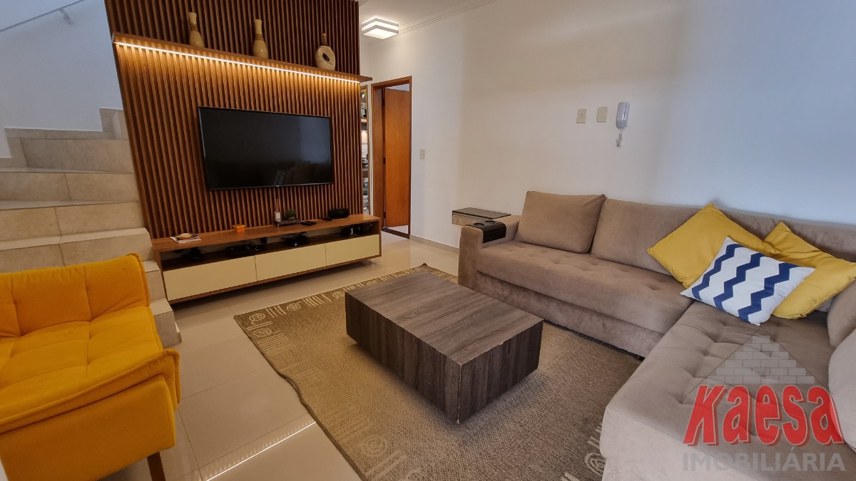 O sobrado conta com 2 suítes aconchegantes, proporcionando privacidade e conforto, além de uma sala elegante e acolhedora, perfeita para momentos em família. A cozinha possui móveis planejados, funcional e moderna, integrada ao ambiente. Dispõe ainda de lavabo, lavanderia, varanda e um charmoso espaço gourmet com churrasqueira, ideal para receber amigos e aproveitar bons momentos.