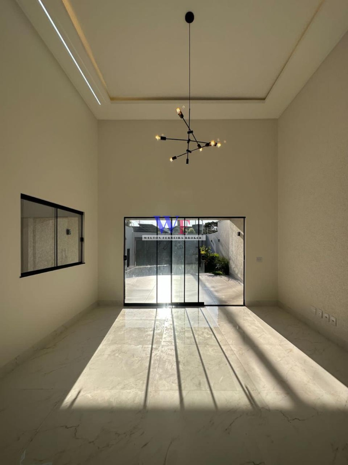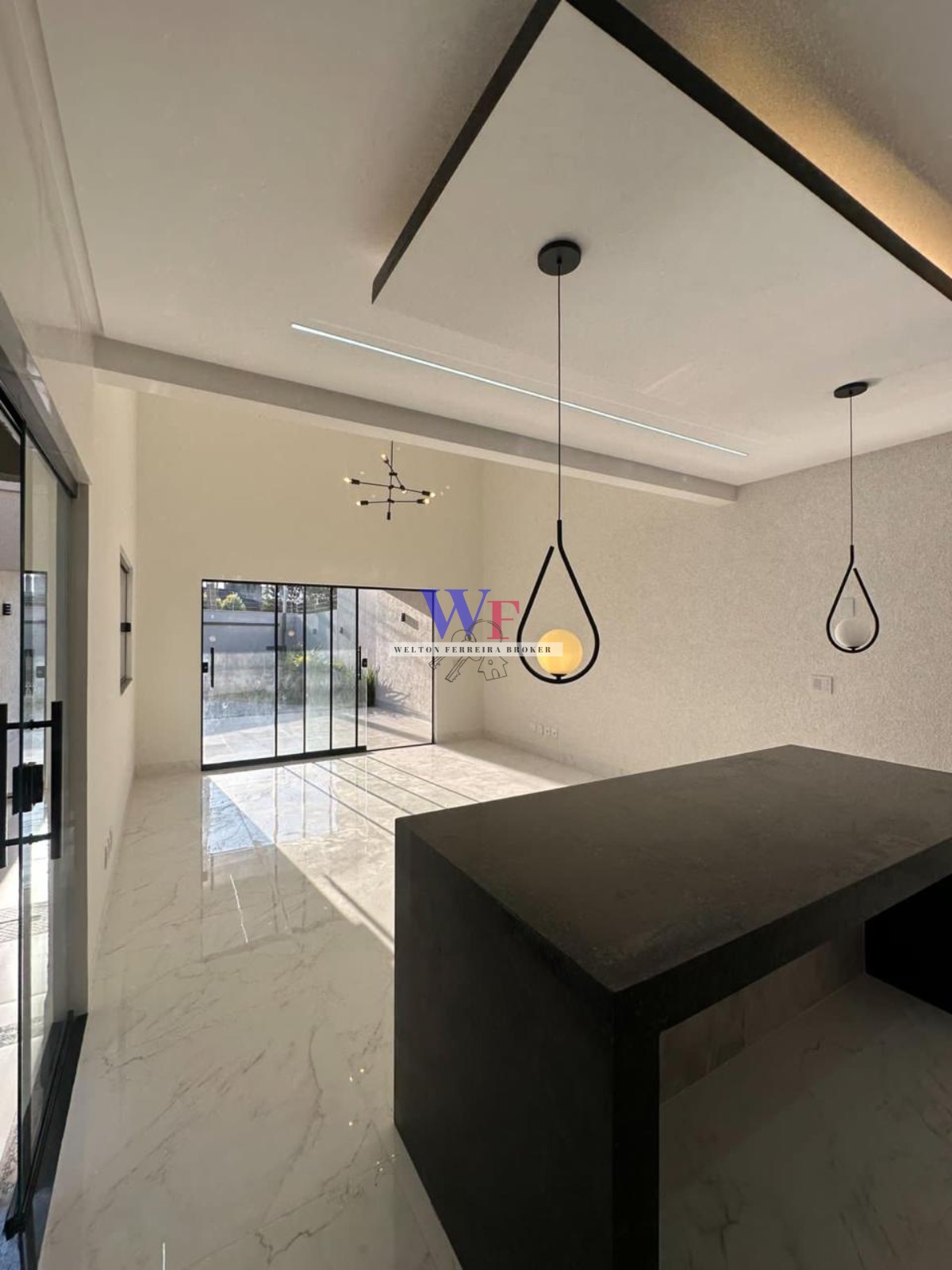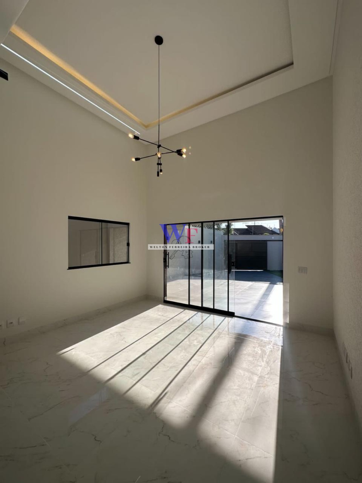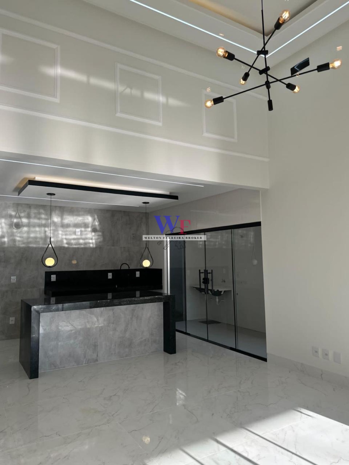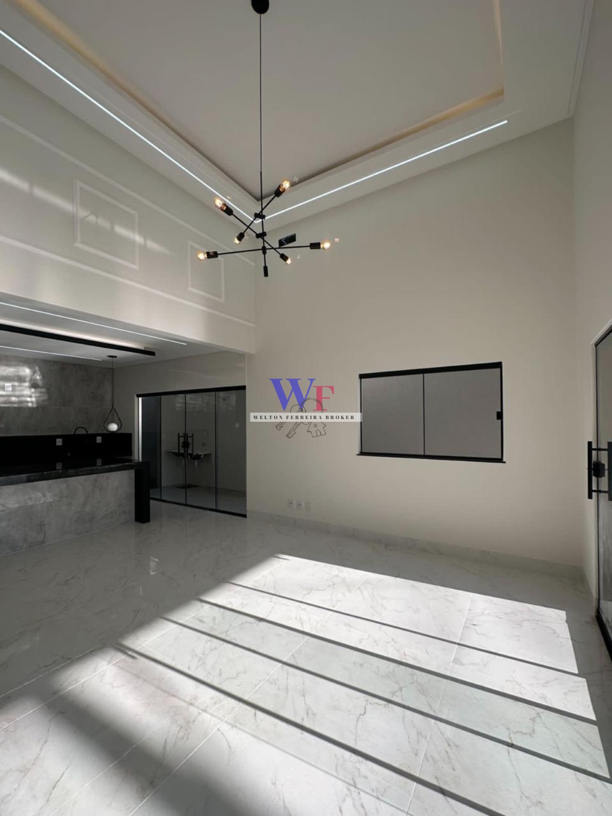 *Sala com pé direito de 4,60m integrada com a cozinha