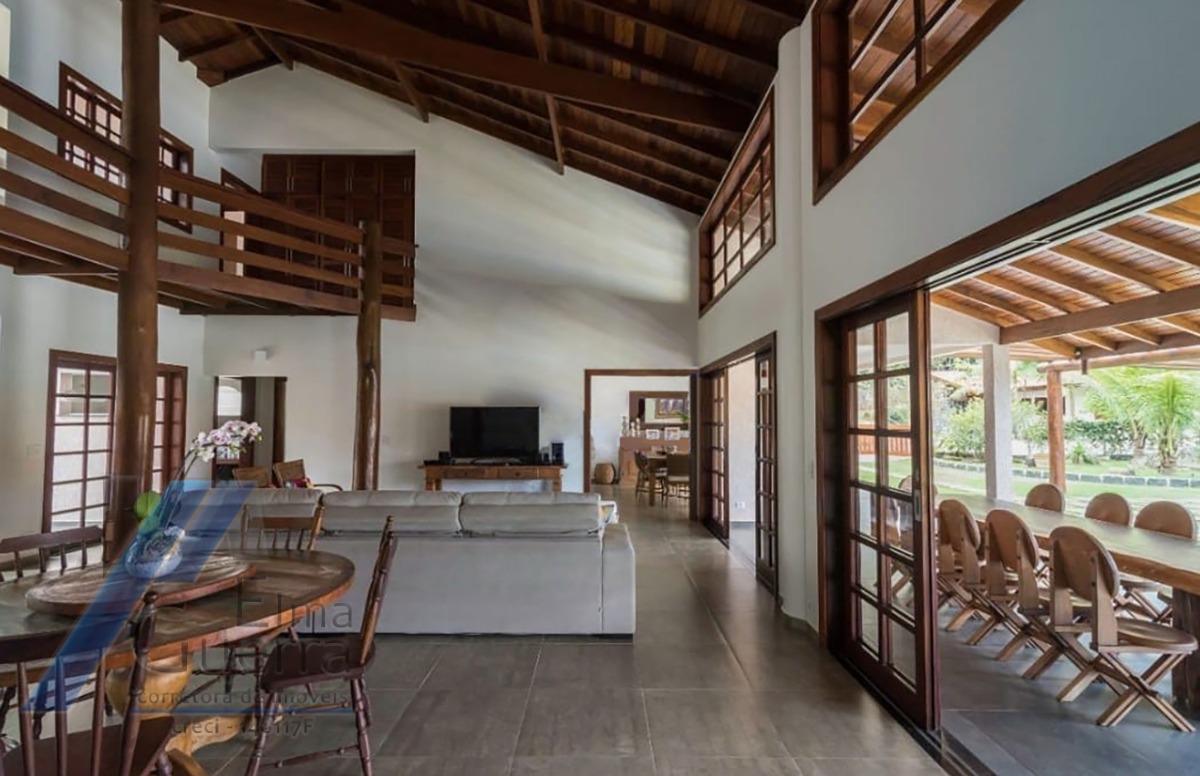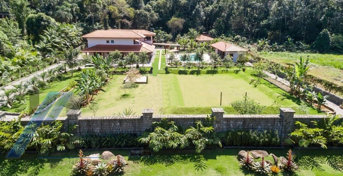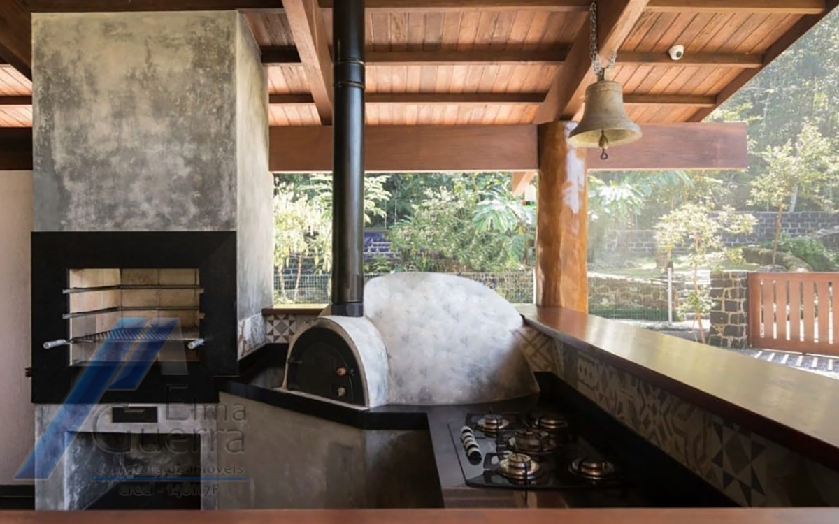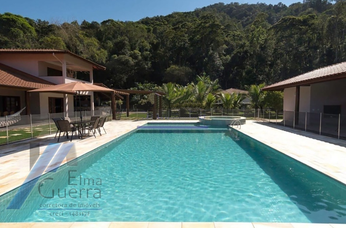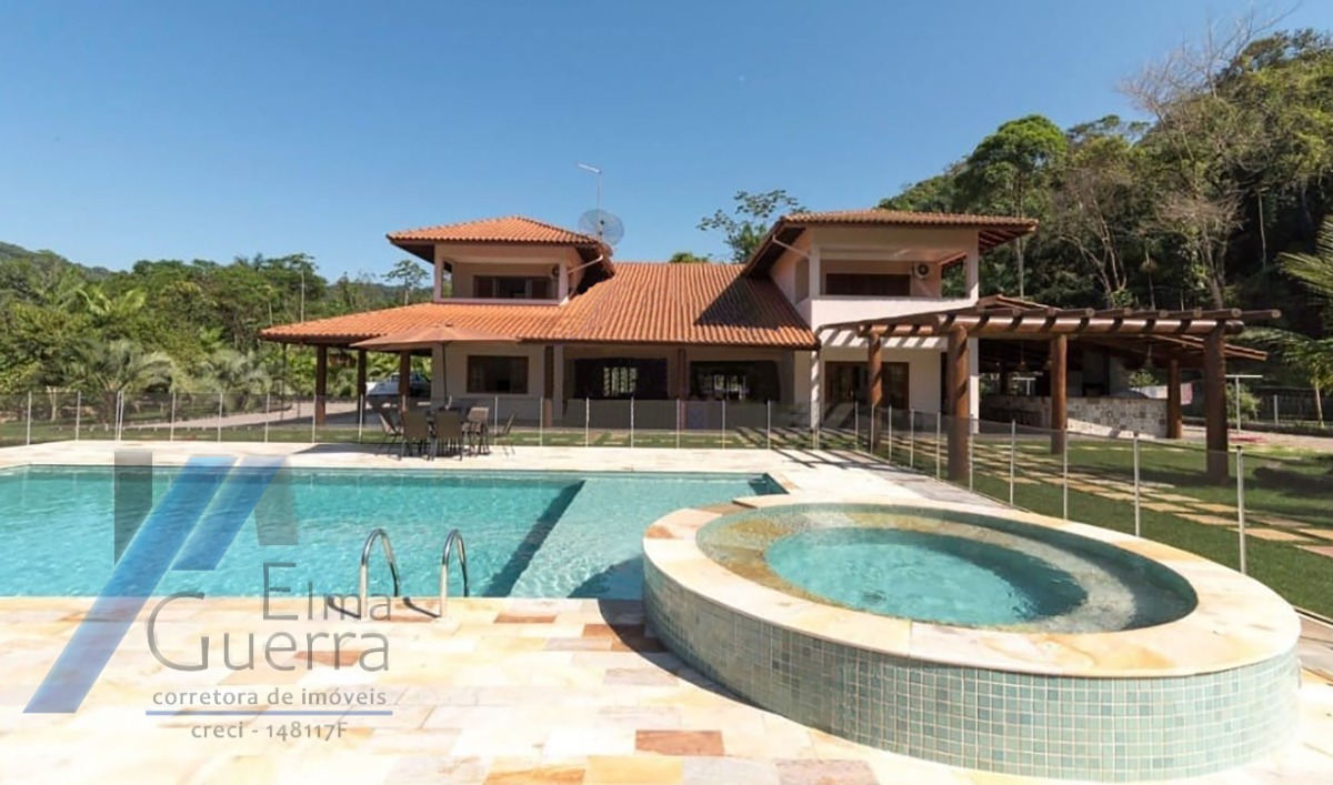 Ubatuba, Ressaca - Belíssima casa com terreno de 5 mil m², com 04 suítes no primeiro andar; todas amplas e arejadas, no térreo mais dois dormitórios, banheiro social, sala de estar, sala de jantar, sala de jogos, lavabo, cozinha completa, dispensa, área de serviço, 05 vagas de garagem, área gourmet com piscina, churrasqueira, forno e fogão a lenha, salão de festas com dois banheiros, quintal e jardim.