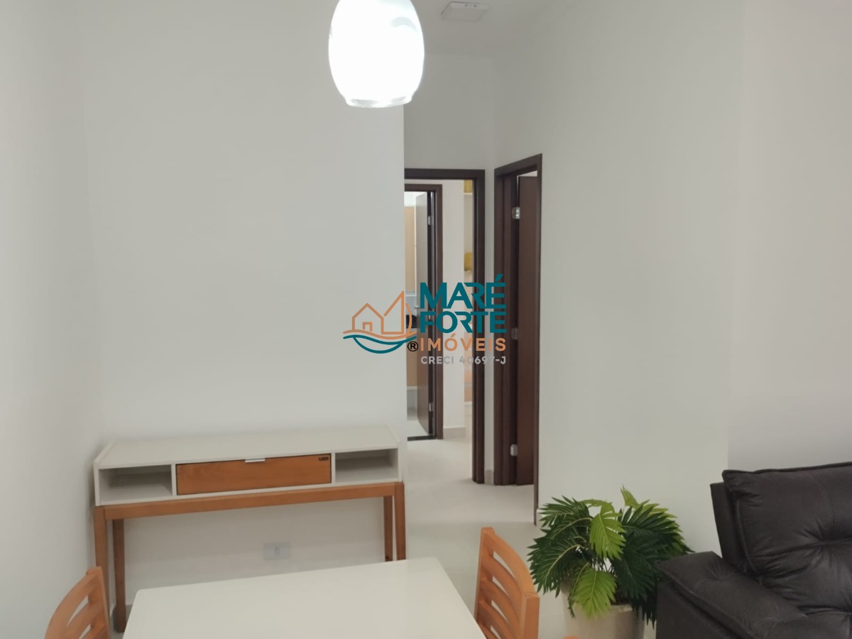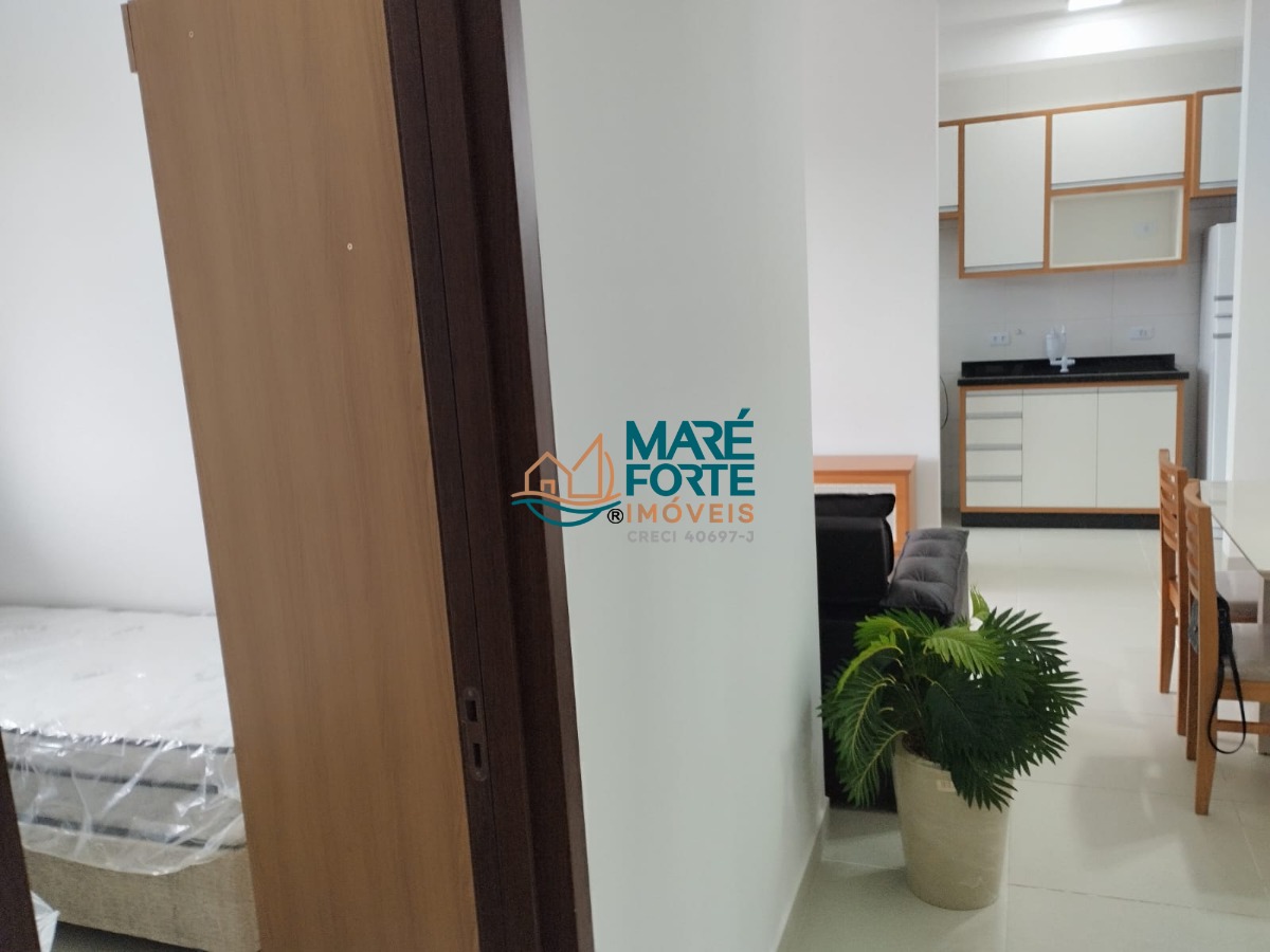 Apartamento , nunca habitado, mobiliado, composto de 1 suíte, 1 dormitório, salas conjugadas, cozinha, área de serviço, varanda gourmet com vista mar, garagem coberta para um veículo