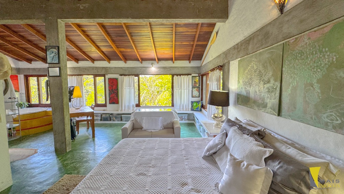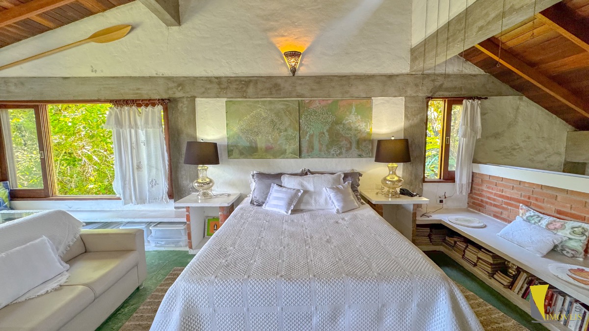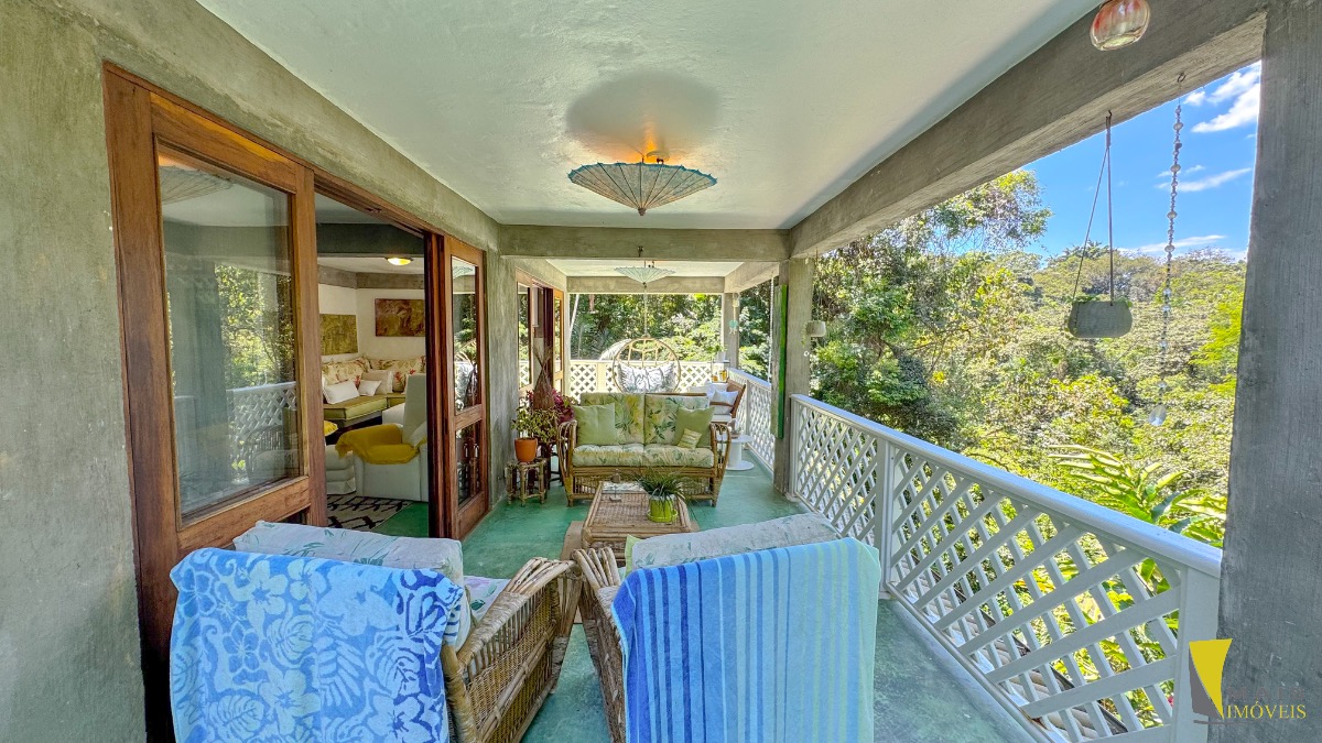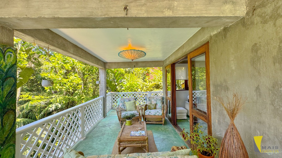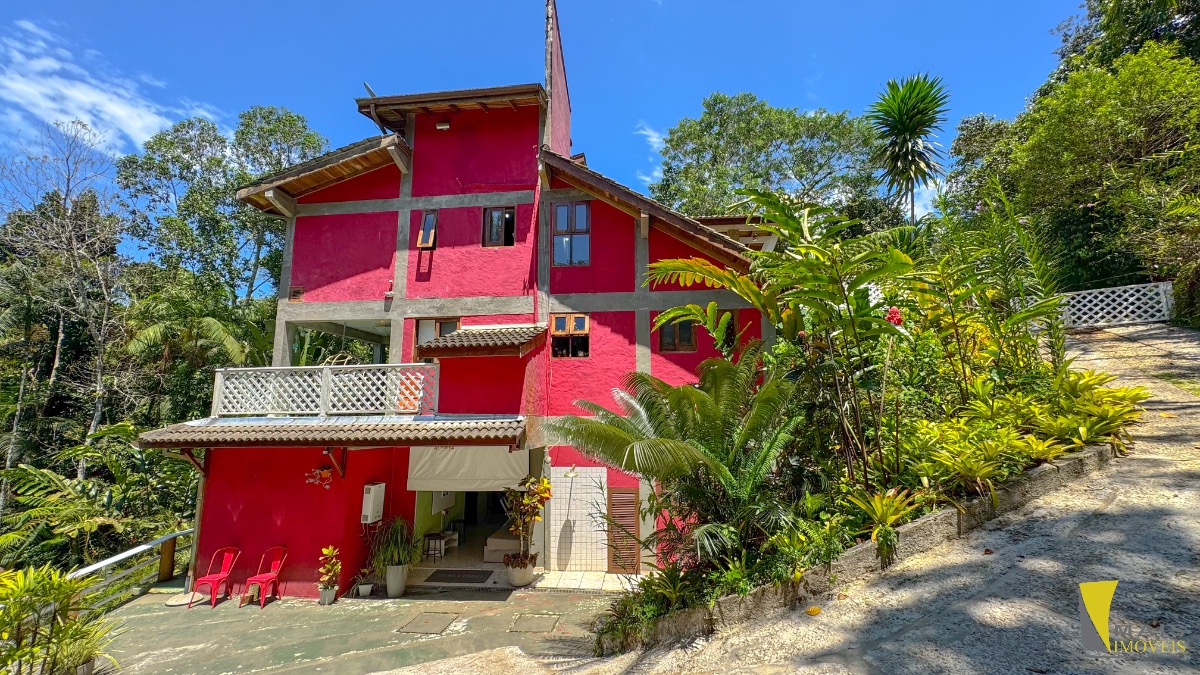 Localizada em uma rua sem saída e reservada a casa conta com 4 suítes, sendo uma suíte master na parte superior bem espaçosa, arejada e com uma hidro de frente para a mata atlântica. No pavimento central encontramos a cozinha, sala de tv e varanda para a mata. No terceiro e ultimo pavimento temos as 3 suítes, sala, banheiro social e uma lavanderia.