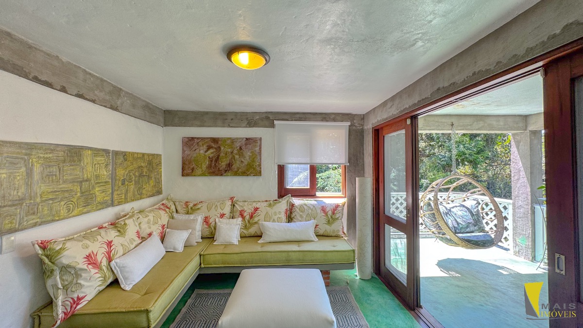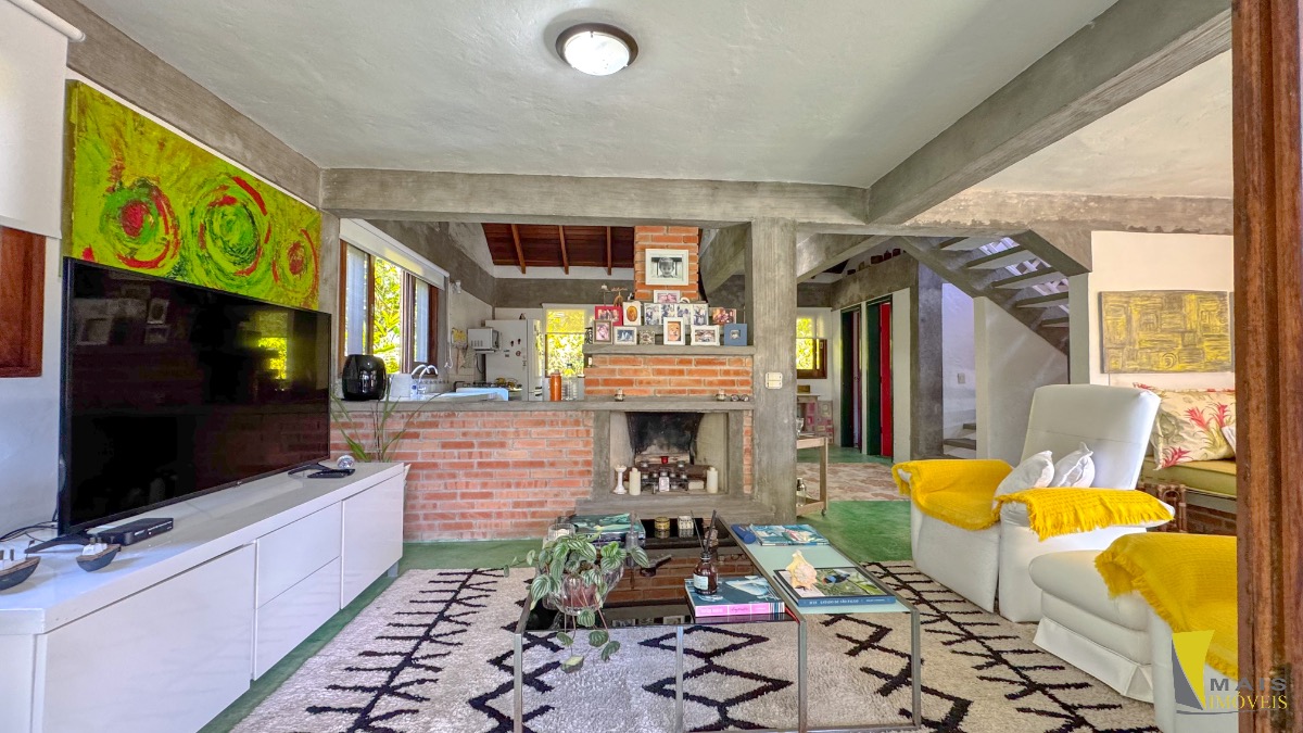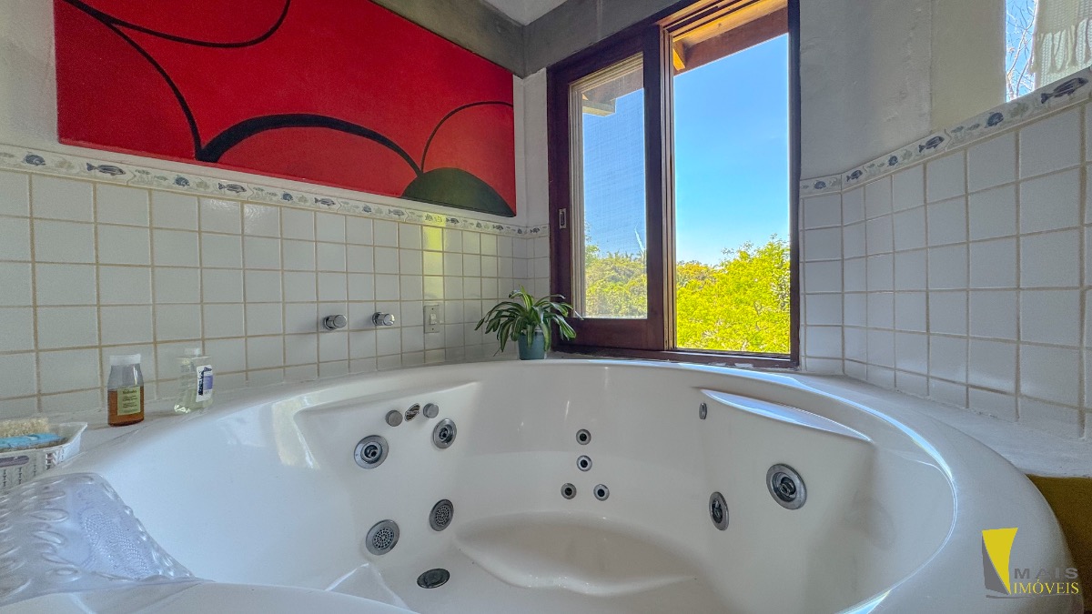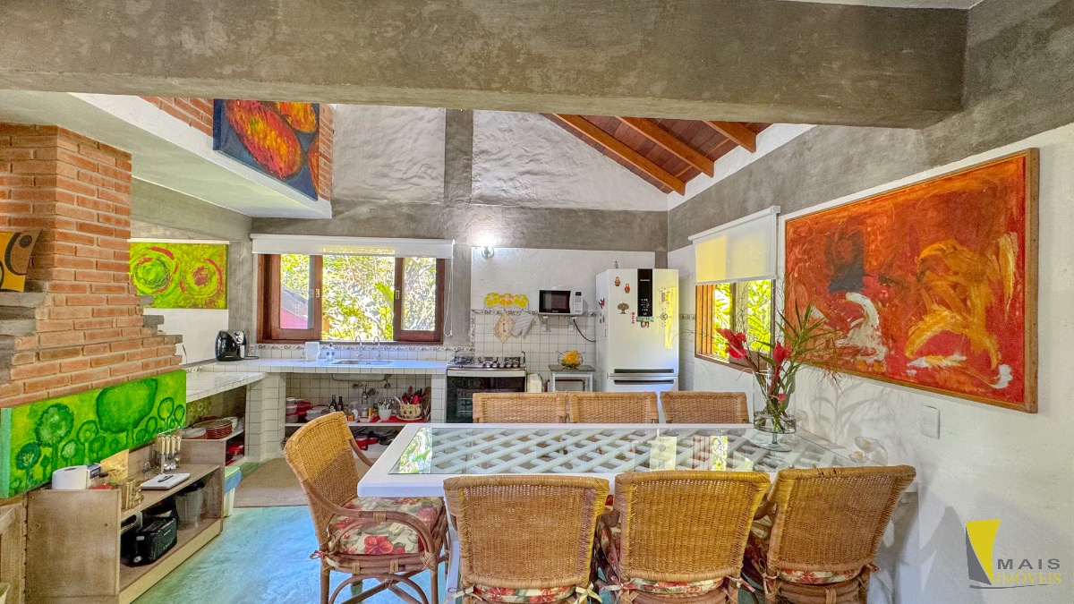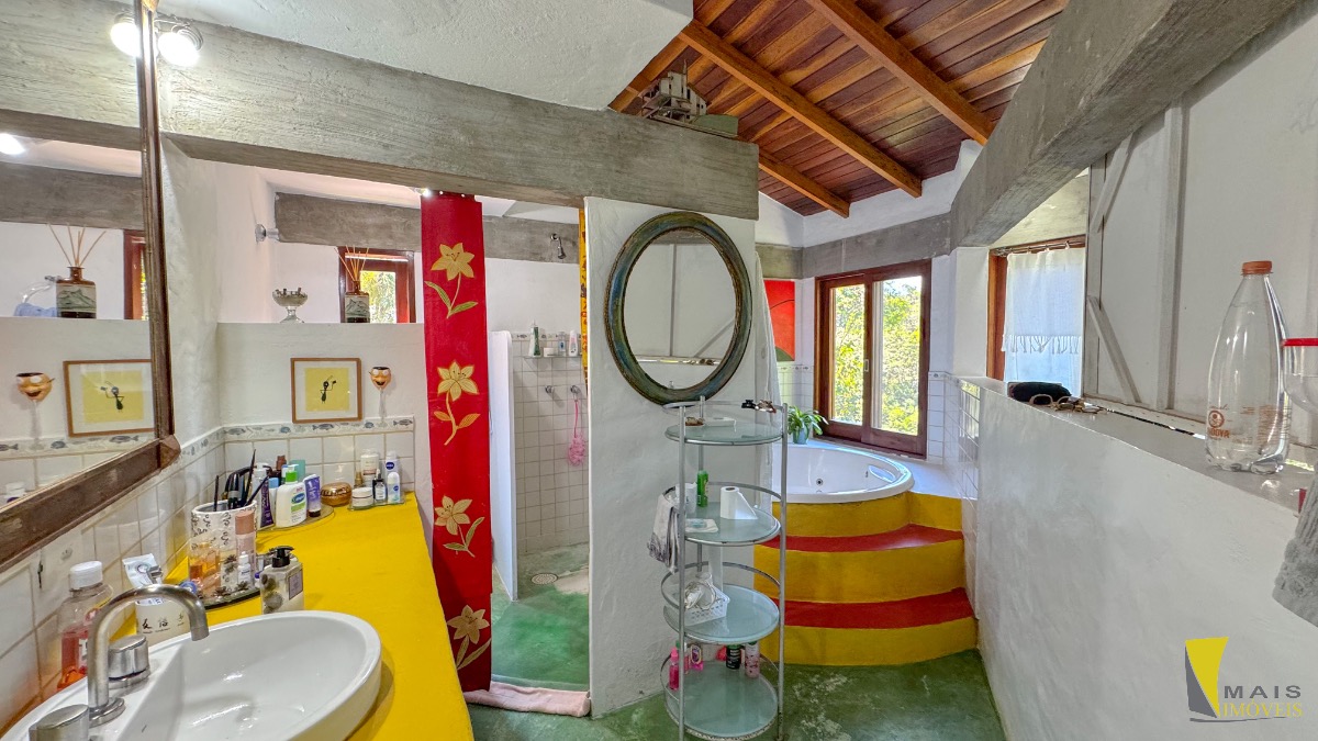 Localizada em uma rua sem saída e reservada a casa conta com 4 suítes, sendo uma suíte master na parte superior bem espaçosa, arejada e com uma hidro de frente para a mata atlântica. No pavimento central encontramos a cozinha, sala de tv e varanda para a mata. No terceiro e ultimo pavimento temos as 3 suítes, sala, banheiro social e uma lavanderia.