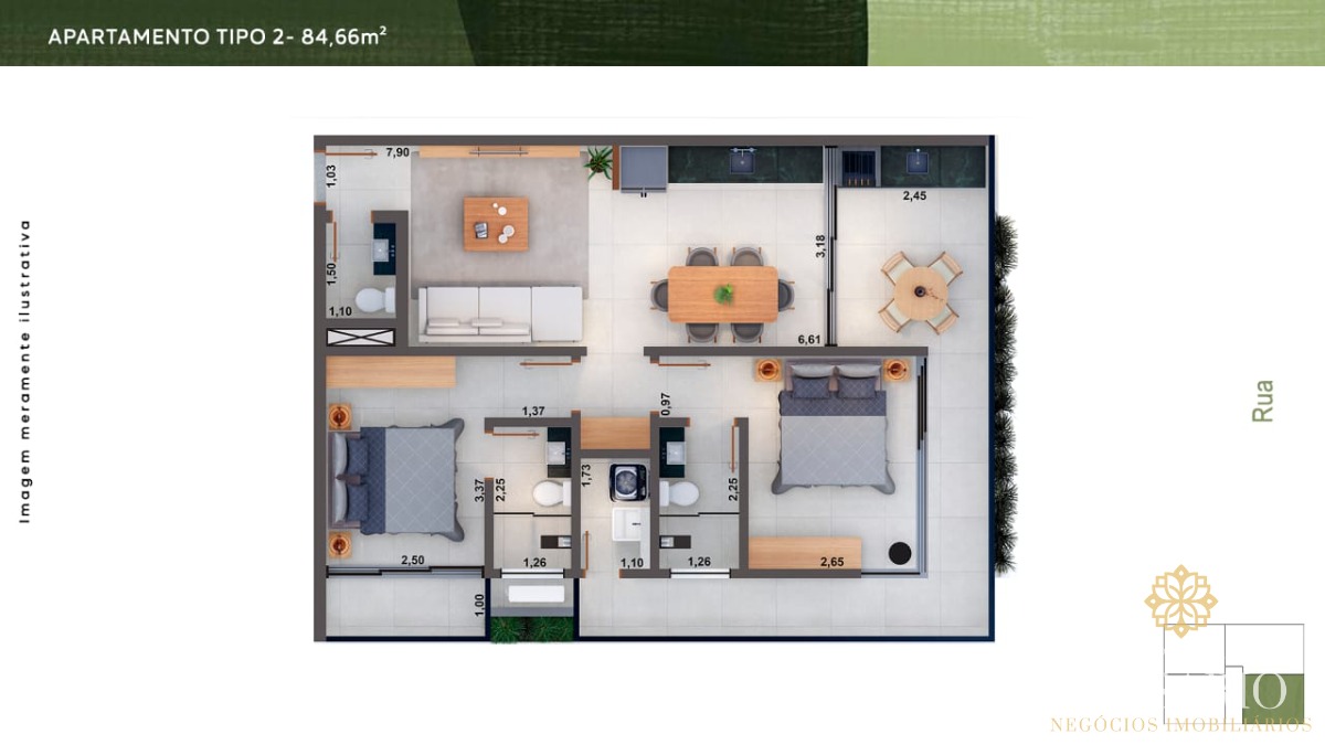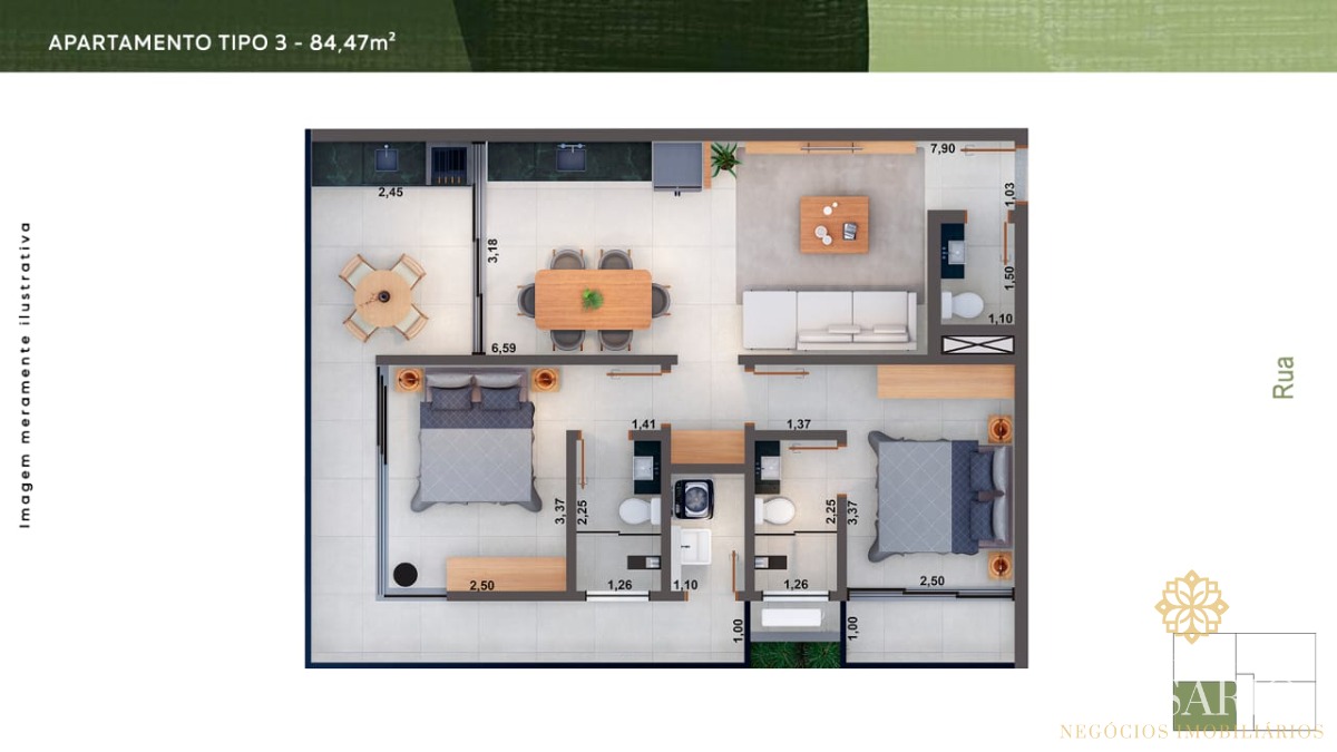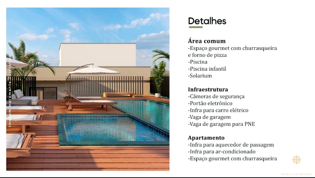 Na área comum terá uma super área de lazer com churrasqueira, forno de pizza, piscina e solarium, além de vigilância 24h, portão eletrônico e garagem.