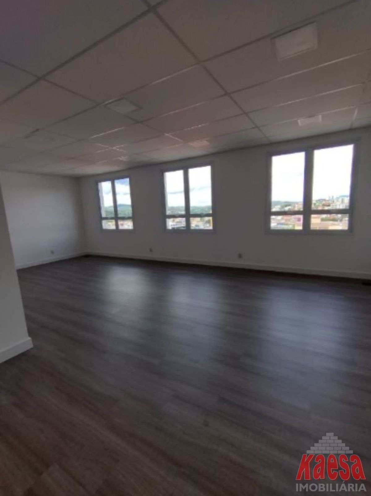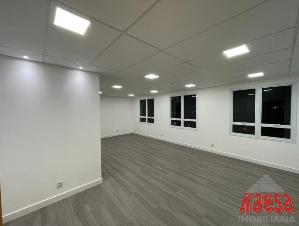 Sala de 45,76 m2, amplo salão, 2 banheiros e 1 vaga na