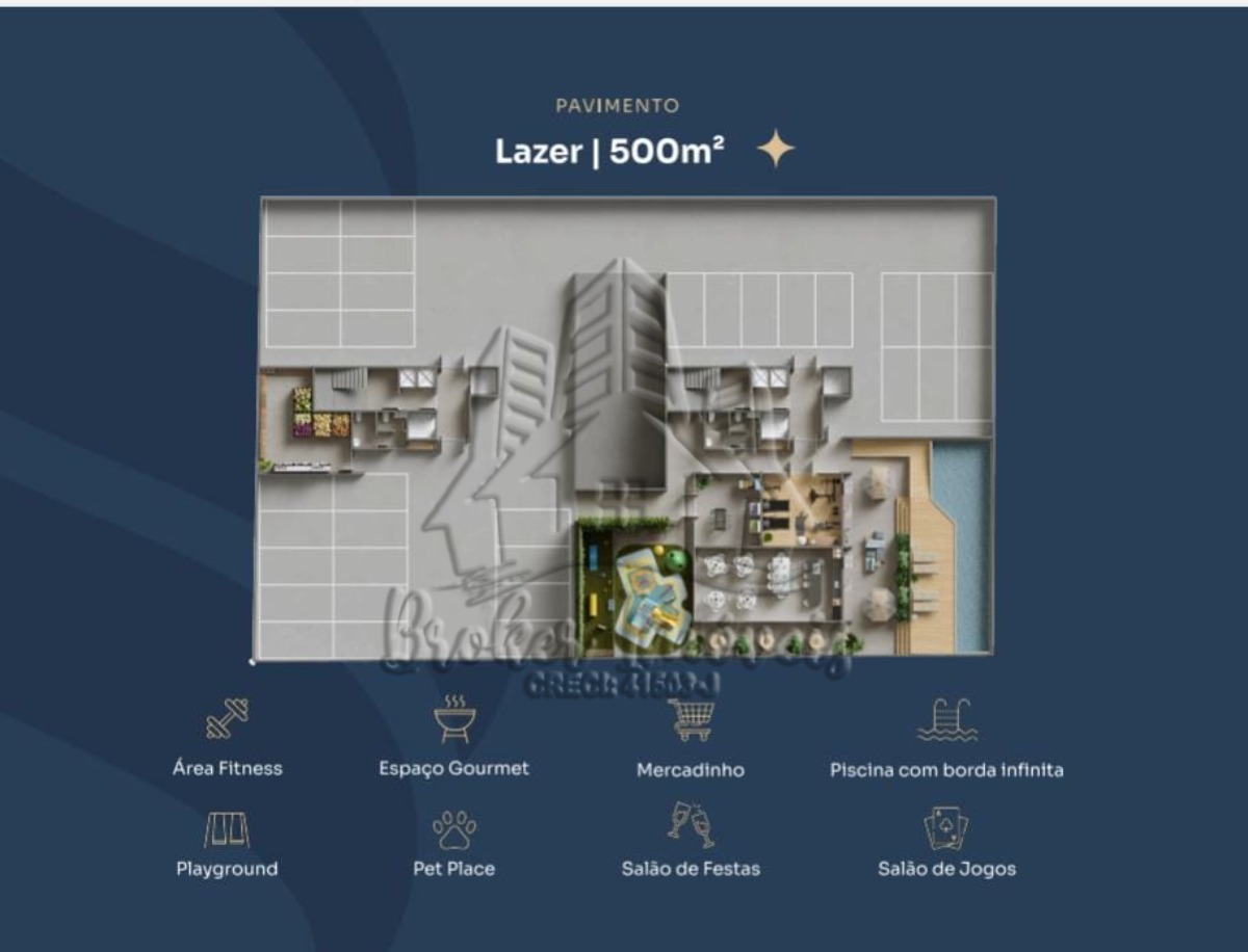 O empreendimento ainda irá possuir uma área de lazer completa, contando com: