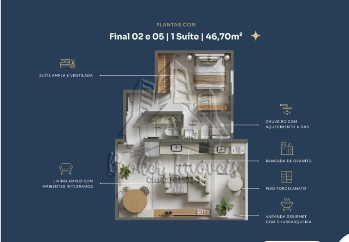 Área Útil 47.70M²
