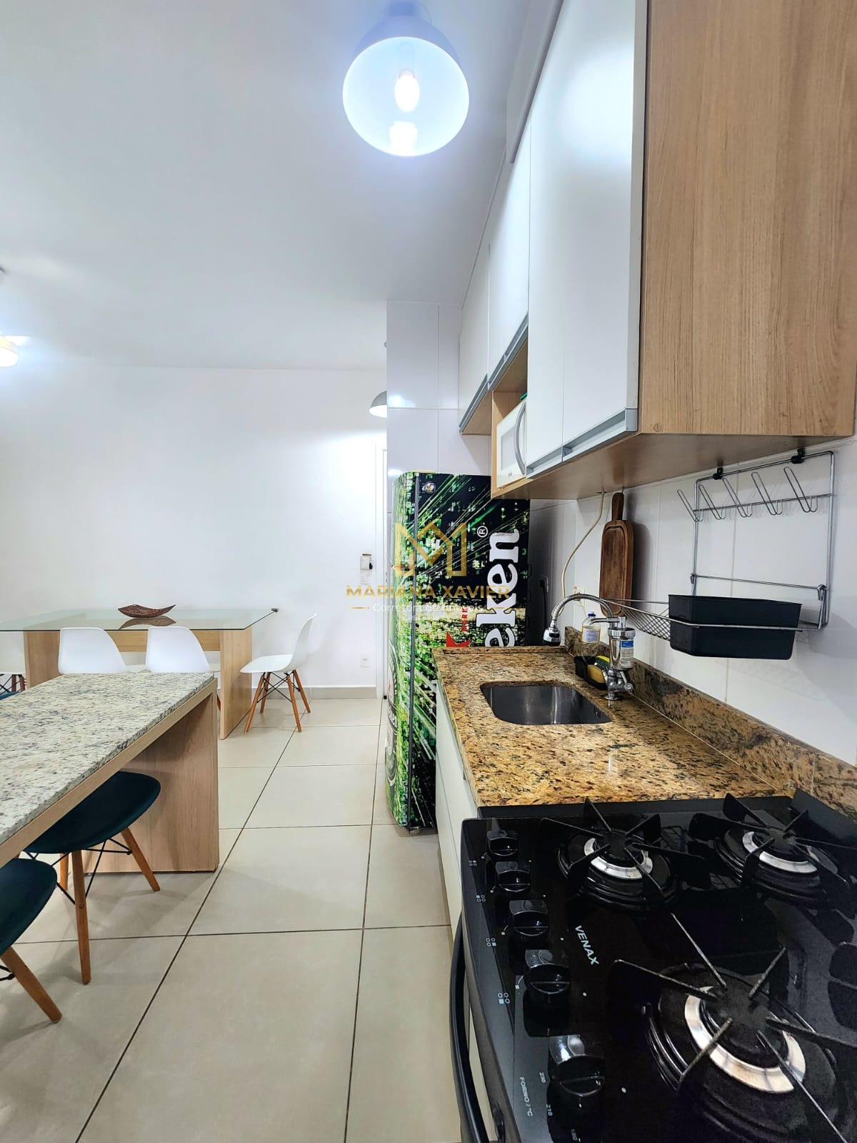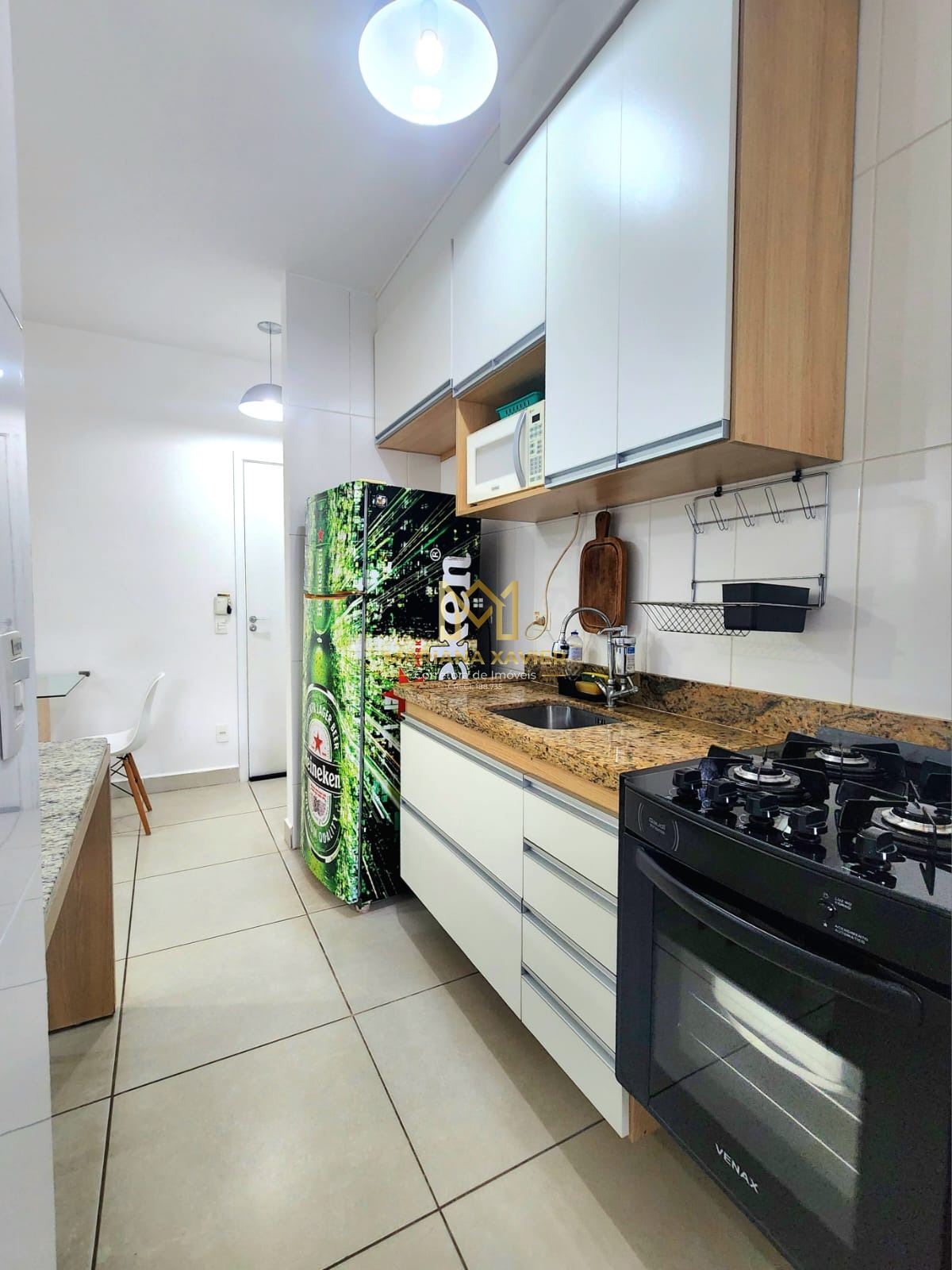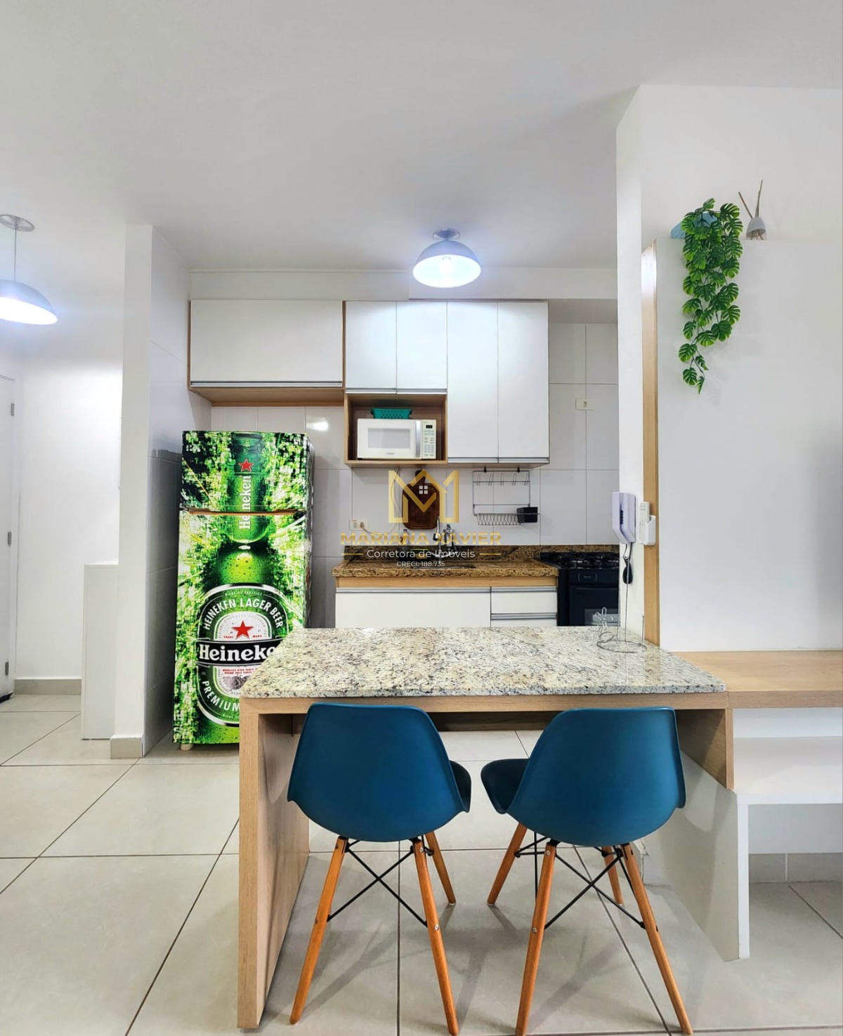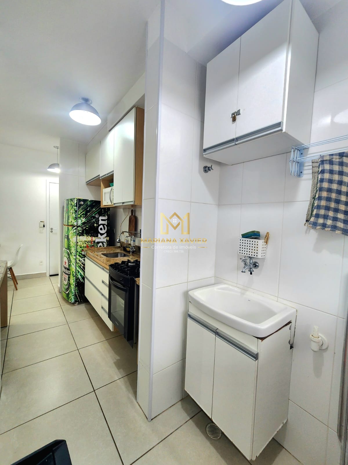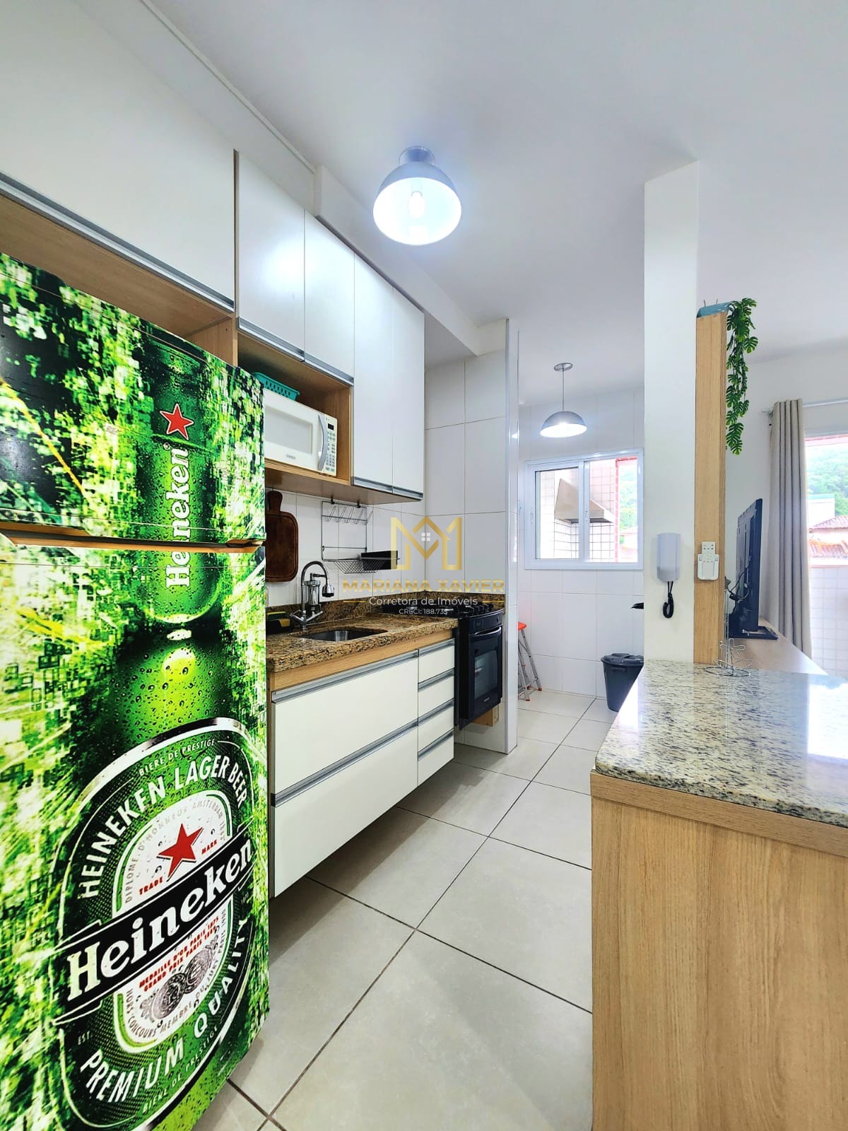 São 80m² de área útil com 2 dormitório sendo 1 suíte, banheiro social, sala com varanda gourmet, cozinha e área de serviço.