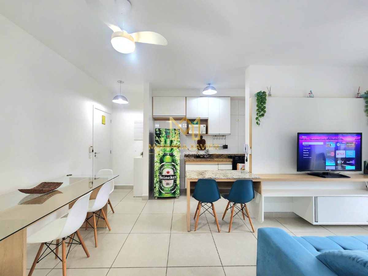 Apartamento mobiliado e bem decorado, com ar condicionado e ventiladores de teto.