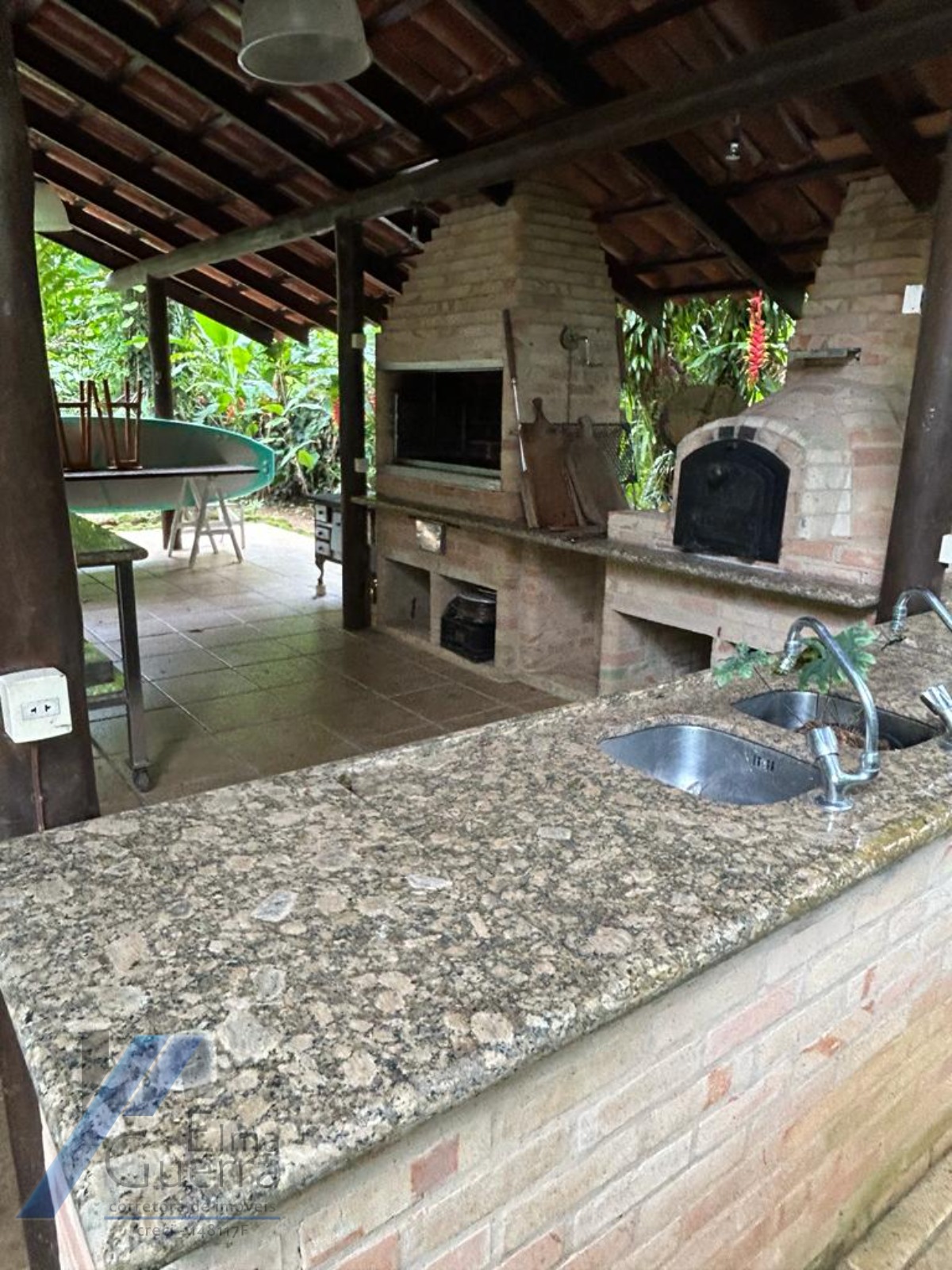 quiosque gourmet (com churrasqueira, forno, fogão, bancada e mesa)