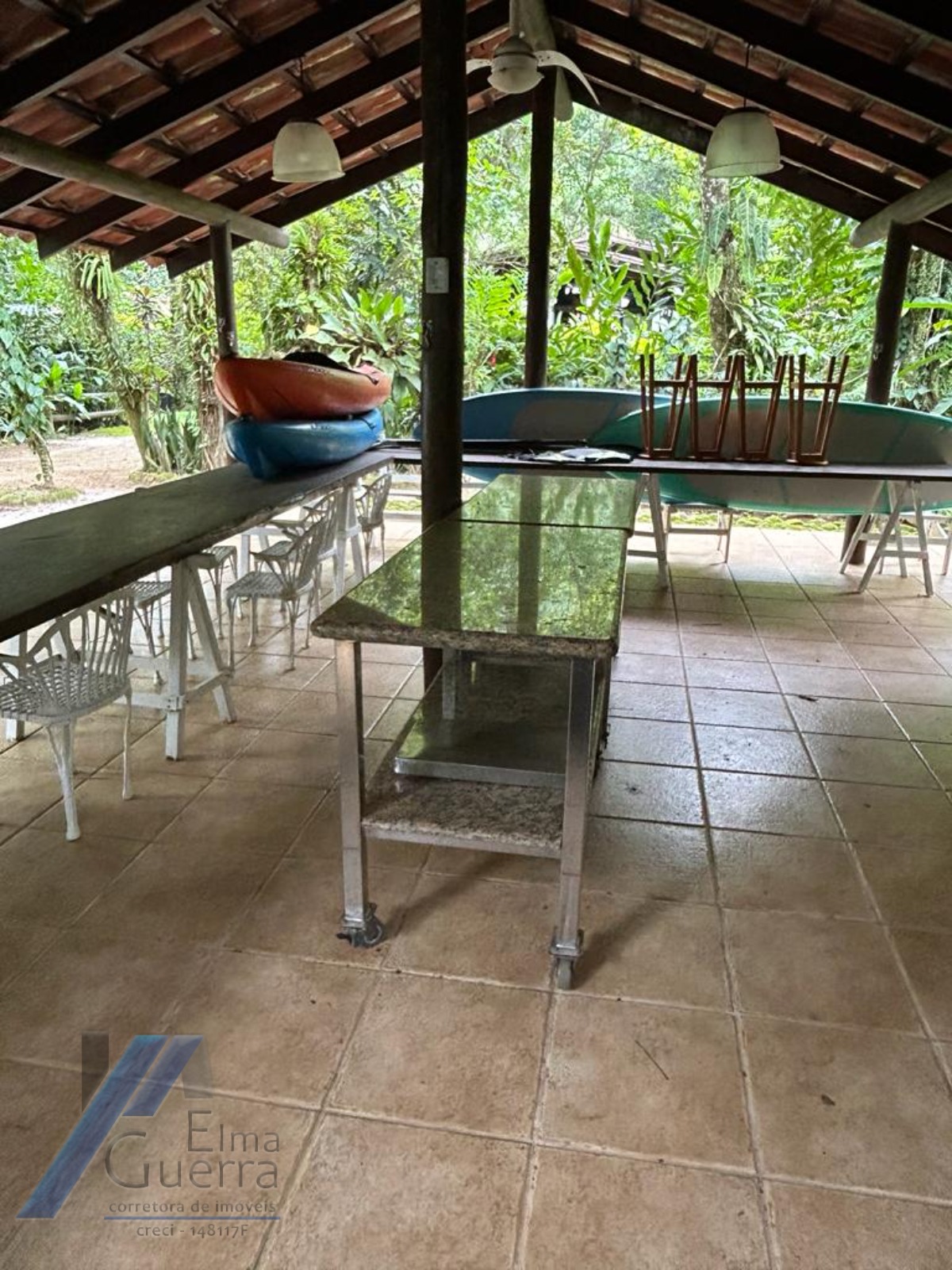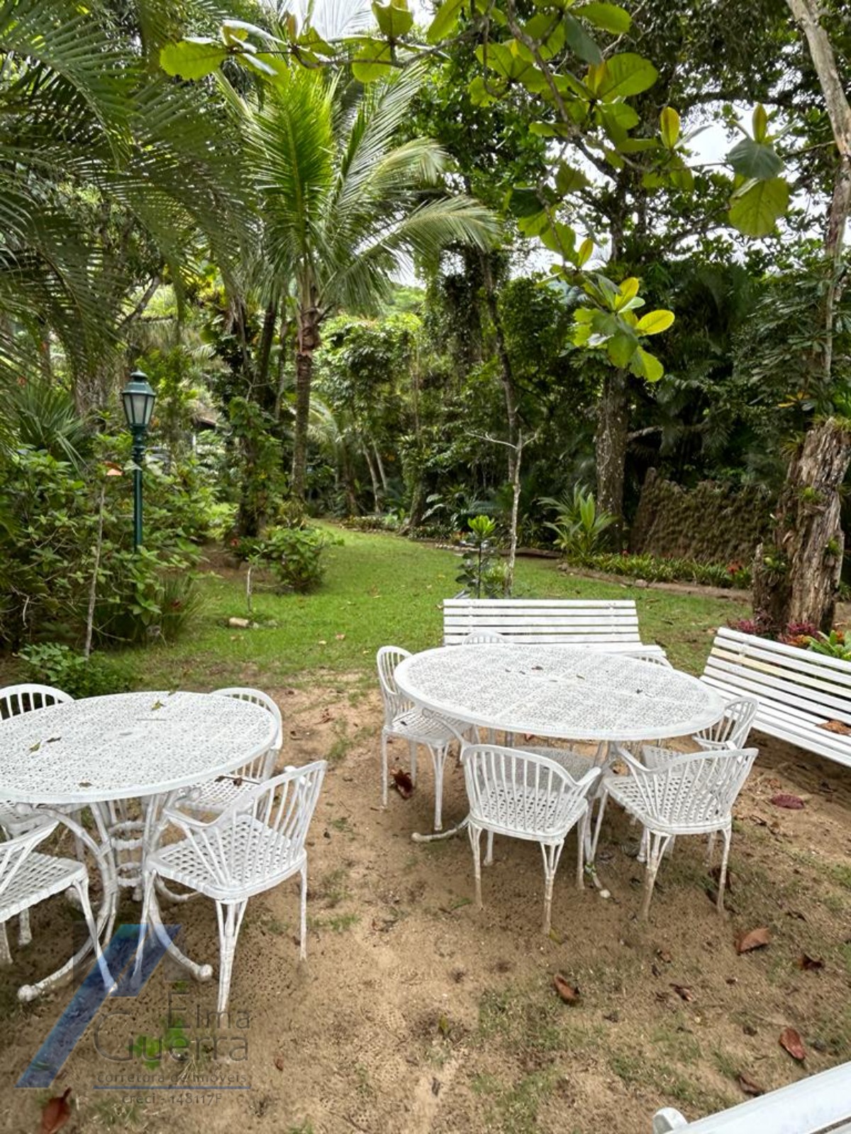 A área do imóvel possui um pequeno curso de água e uma grande variedade de espécies nativas de árvores e vegetações.